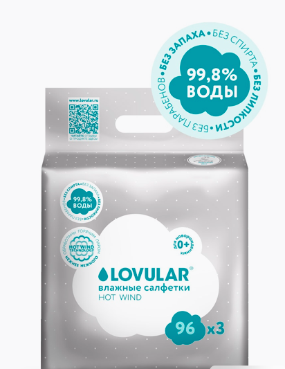 LOVULAR Детские влажные салфетки с крышкой 0+ 3 уп по 96 шт