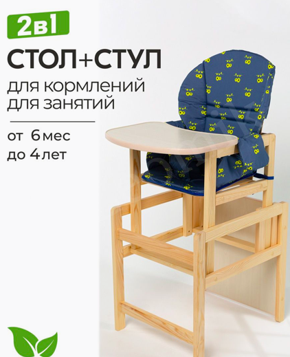 Описание: Стульчик детский изготовлен из массива осины, которая обладает большой прочностью и влагостойкостью. А главное, бактерицидные свойства осины позволяют использовать мебель дома на кухне, в детской комнате, в гостиной и спальне, без боязни, что она принесет вред малышу. Покрытие лаками на водной основе, делает детскую мебель экологически безопасным. Детский стульчик деревянный предназначен для детей от 6 мес до 3 и более лет. Конструкция исключает опрокидывание собранного стула при наклоне вперед, подходит под самых непосед. Мягкий и приятный наощупь чехол для сиденья не впитывает воду и пыль, его легко отстирать от пятен еды, жидкостей, карандашей и красок. Удерживающее устройство, напоминающее подгузник, надежно фиксирует положение малыша. Ширина посадочного места 30см. Стильный стол стул детский послужит надежным и комфортным помощником при кормлении, а так же для развития игровых способностей малыша. Стул трансформер превращается в столик и стульчик деревянный, которые будут удобны в любых видах играх и творчества. Одобрен покупателями!