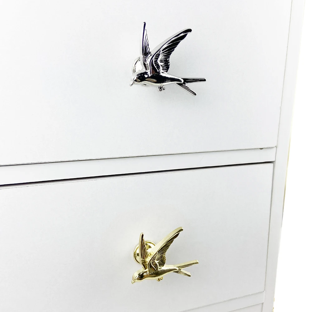 Мебельная ручка в форме птицы, античные золотые и серебряные ручки для шкафов, шкафов, ящиков, из цинкового сплава, ручки для шкафа