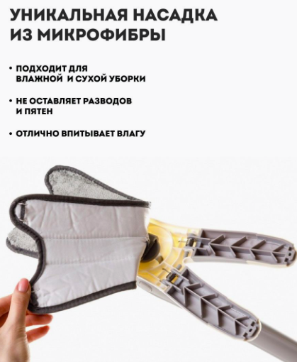 Описание: Моющая хозяйственная швабра бабочка для мытья пола окон стен дверей и потолка с самоотжимом создана для удобной комфортной быстрой ежедневной уборки без ведер. Для того чтобы начать уборку достаточно окунуть швабру под струю воды и легким движением руки отжать ее с помощью специального механизма. Благодаря насадке тряпке для швабры микрофибре наша швабра не оставит следов и разводов на любой поверхности пола а также потолке и окнах. Хозяйственные товары всё для дома комплект для уборки со шваброй без ведра компактно впишется и дополнит любой интерьер. Удобная телескопическая металлическая ручка швабры подстроиться под любой рост хозяйки что освободит вас от болей в спине а благодаря самоотжиму ваши ручки останутся сухими. Удобная вращающаяся на 360 градусов головка швабры идеально подходит даже для самых стойких загрязнений и труднодоступных углов и мест в доме. Швабра товар для уборки станет незаменимым любимым помощником хозяйки в любом доме и идеально подойдет на подарок любимой женщине жене маме сестре девушке бабушке на день рождения новый год 8 марта и на любой другой праздник.