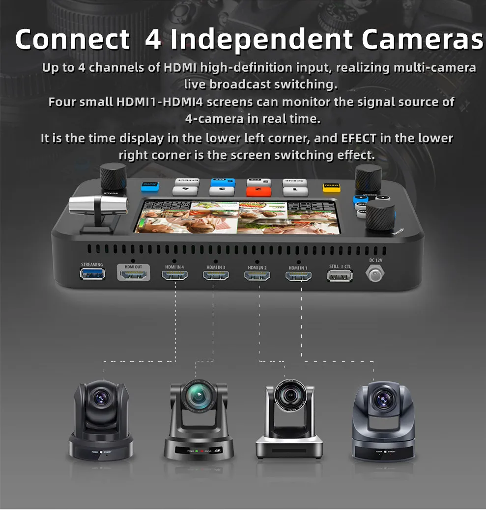 🍒До 4 каналов входного сигнала HDMI высокой четкости для реализации переключения нескольких камер прямого вещания;