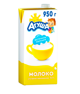 Молоко ультрапастеризованное для питания детей АГУША 3,2% старше 3-х лет, без змж, 950г, Россия, 950 г