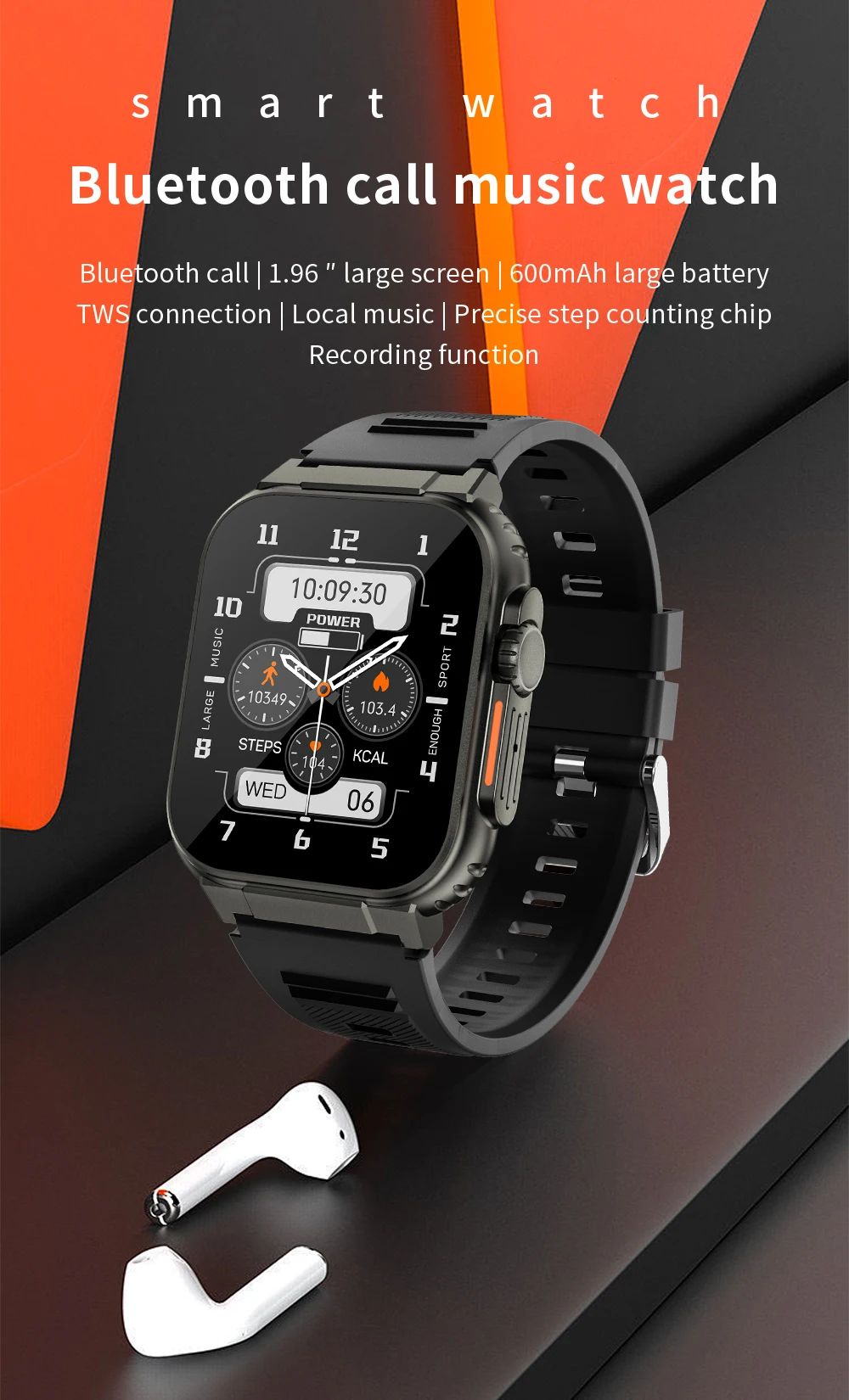 5: сверхбольшой экран 1,96, негабаритная батарея 240*286 600 мАч, сверхдлительный режим ожидания, большая батарея, локальная музыка, подключение функции записи песен для прослушивания TWS 8321, более точный пошаговый чип