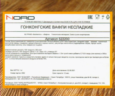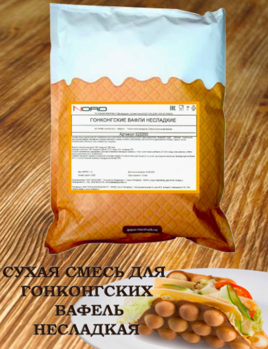 Описание: Готовая смесь для выпечки вкусных и ароматных Гонконгских вафлей.**Способ изготовления: в** 1кг смеси добавить 700мл. воды и 300мл. масла растительного ( по желанию масло можно частично заменить водой)1. Все компоненты перемешать в одной емкости до однородного состояния.2. Выпекать при температуре 180-200С в течении 3-5 минут, в зависимости от особенностей вафельницы.3. Вафельные формы должны быть очищены , прогреты до необходимой температуры, смазаны маслом.Из одного кг. сухой смеси получается 15 -17 вафель