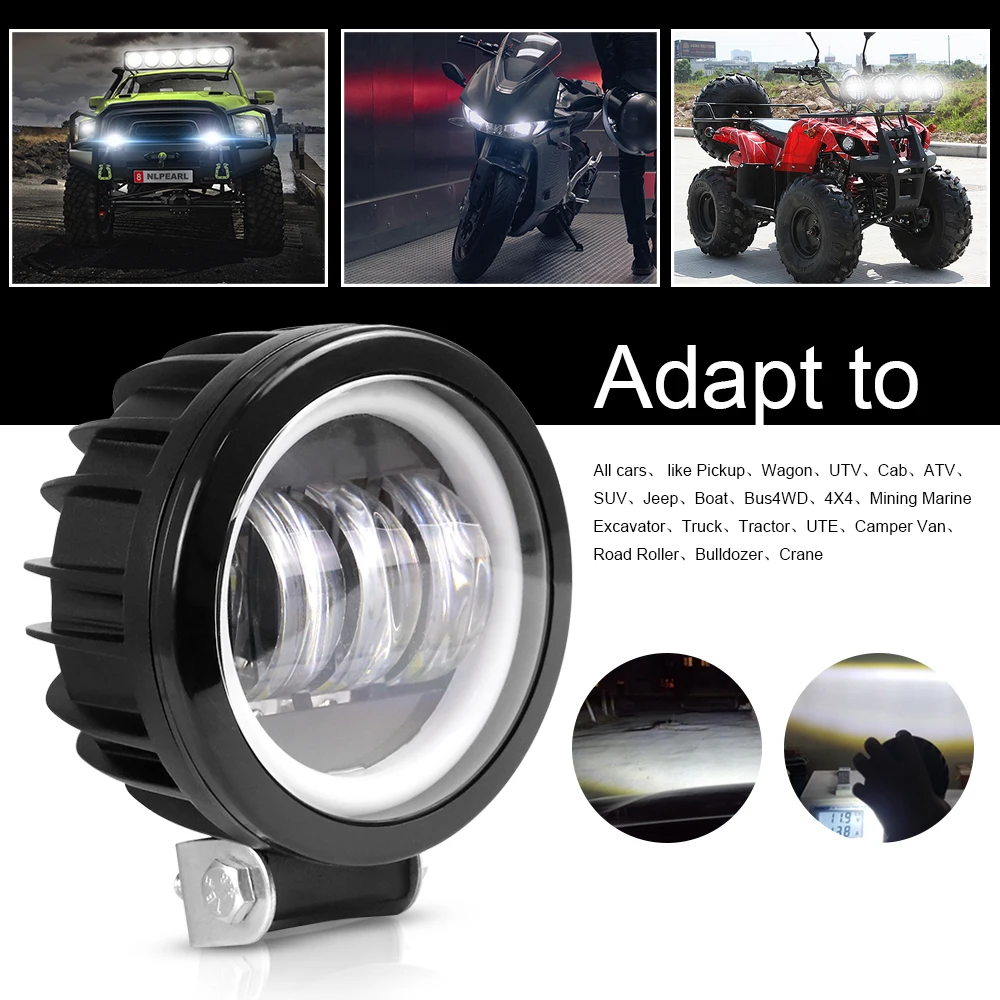 NLpearl 4 "30 Вт мотоциклетный светодиодный противотуманный светильник с ангельскими глазками, рабочий светильник, бар, внедорожный, 12 В, 24 В, Точечный светильник для бега, автомобильный Грузовик, лодка, Atv