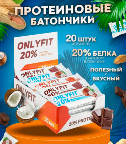 ONLYFIT Батончики протеиновые 20шт по 40г