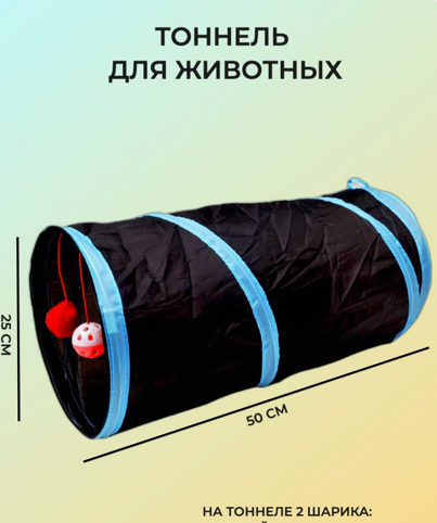 Описание: Тоннель игровой для кошек, в котором можно играть и прятаться. На игрушке для кошек есть подвесной шарик с бубенчиком, с которым будет интересно играть. Данная игрушка подойдет для разных животных: котов и кошек, собак мелких пород, хорьков, норок и т.д. Тоннель складывается и раскладывается в считанные секунды: тройной тоннель складывается и фиксируется резинкой, к четверному в комплекте идет сумка для хранения, у прямого тоннеля есть завязки. В сложеном состоянии достаточно компактный, что идеально подходит для хранения дома и путешествий. Все размеры каждого тоннеля указаны на фото (размер прямого: длина 50 см, диаметр 25 см). Переходите в наш магазин, чтобы ознакомиться с нашим ассортиментом зоотоваров для кошек, собак и грызунов.
