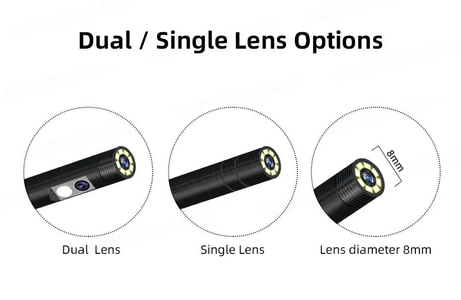 • Камера с двумя объективами:Промышленная эндоскопическая Инспекционная камера KERUI с двумя объективами и экраном IP67 Водонепроницаемый портативный цифровой видеобороскоп Snake 1080P имеет две линзы, которые обеспечивают четкие и детальные изображения места инспекции.