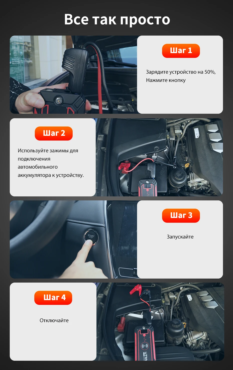 Пусковое устройство UTRAI 2500A, 10 Вт, с ЖК-экраном пусковое для автомобиля