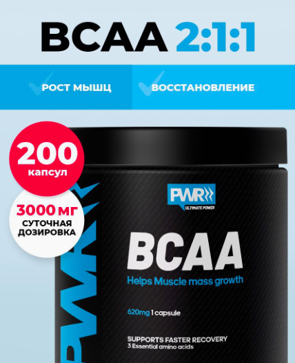 PWR ultimate power BCAA спортивное питание бцаа 200 капсулы