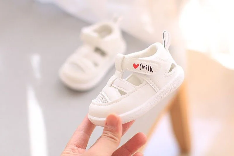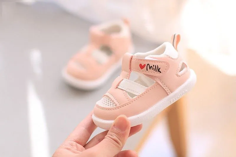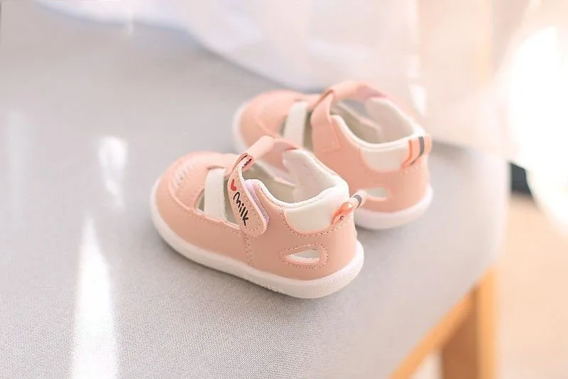 Сандалии детские кожаные с закрытым носком, босоножки с мягкой подошвой, Нескользящие, пляжные тапочки для маленьких девочек и мальчиков, на лето