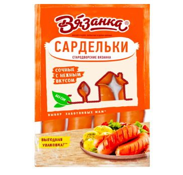 Описание: Сардельки торговой марки ВЯЗАНКА изготовлены по особому рецепту с добавлением специально подобранных специй. Эти классические сардельки с богатым мясным вкусом имеют аппетитную плотную консистенцию и отличаются особенной сочностью.