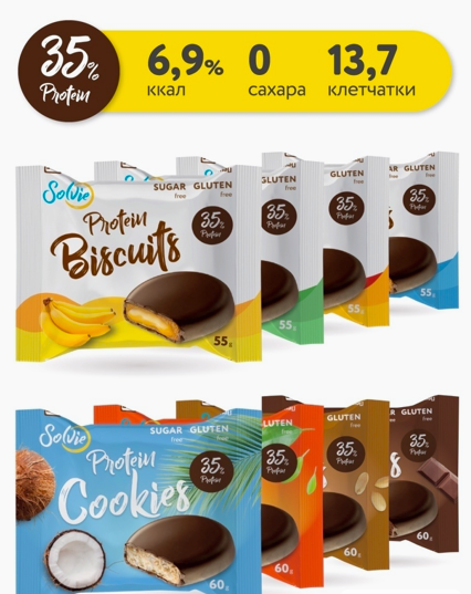 Solvie Протеиновое печенье/АССОРТИ/35% белка