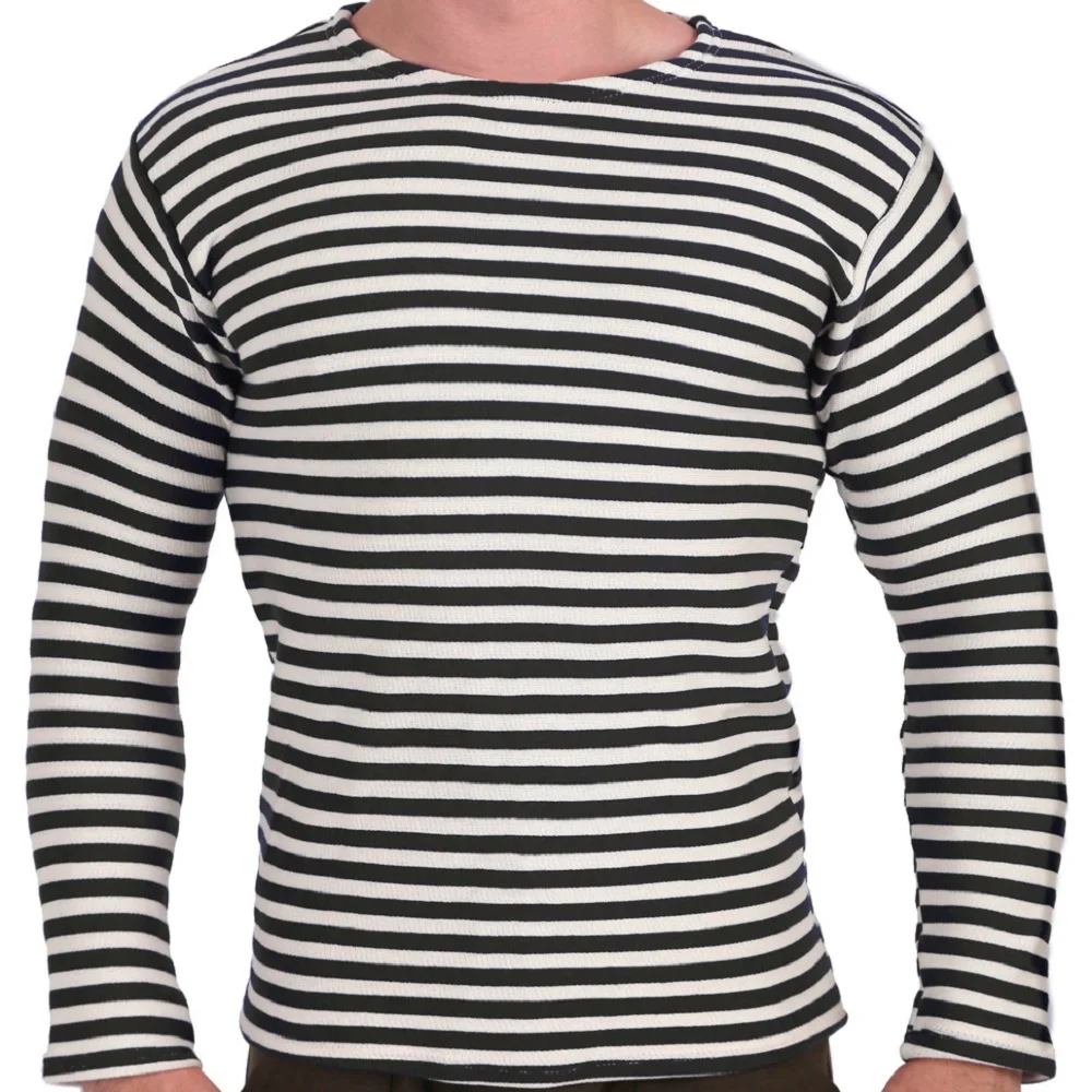 Тельняшка ВОДОЛАЗ двойной вязки 50% шерсть и 50% хлопок, черная полоса, с длинным рукавом, мужская, теплая, зимняя одежда