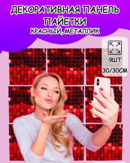 Описание: Фон для Фотозоны из Панель с Пайетками для Оформления Праздника.- Декоративная панель с пайетками для эффектного оформления фотозон. Сверкающие панели украсят праздник сиянием и воплотят мечту о волшебном празднике в реальность. Каждая панель имеет несколько количество монтажных отверстий, диаметром 3мм, закрытых с внешней стороны отражающим элементом. Панели можно крепить к поверхности при помощи двухстороннего скотча, саморезами и скобами. Пайетки отлчно подойдут для оформления фотозон, дня рождения и любого праздника. Также отлично послужит для наружной и внутренней рекламы. Панели легко и удобно установить и соединить между собой.
