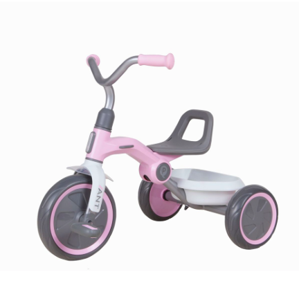 Велосипед трехколесный Qplay Ant Plus складной с ручкой управления корзиной для игрушек и ремнями безопасности