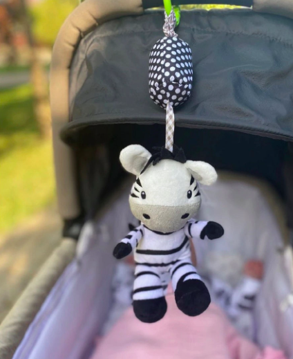 VeraKit Игрушка развивающая подвеска зебра в коляску с колокольчиком погремушкой для младенцев 0+