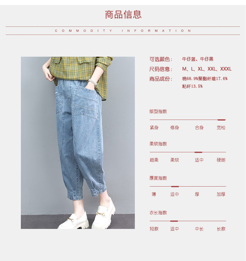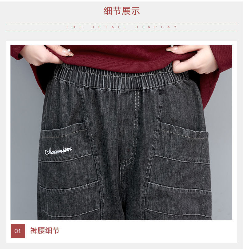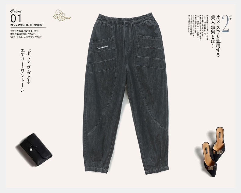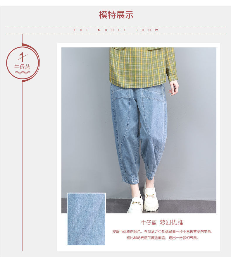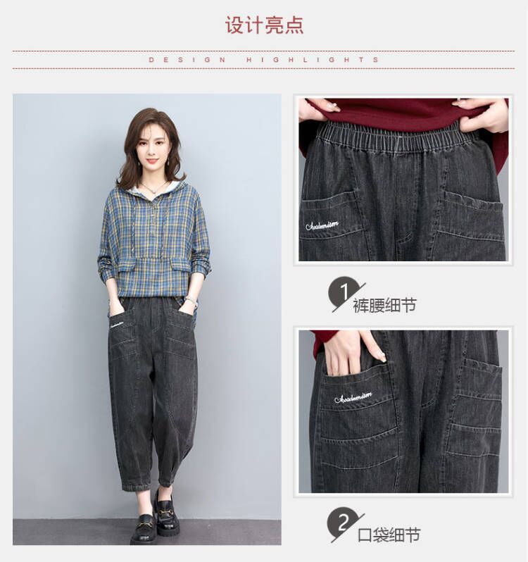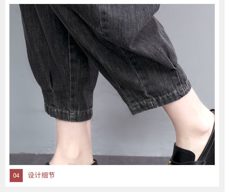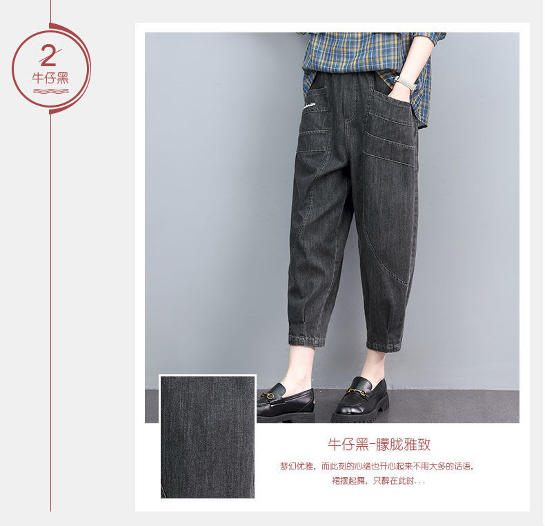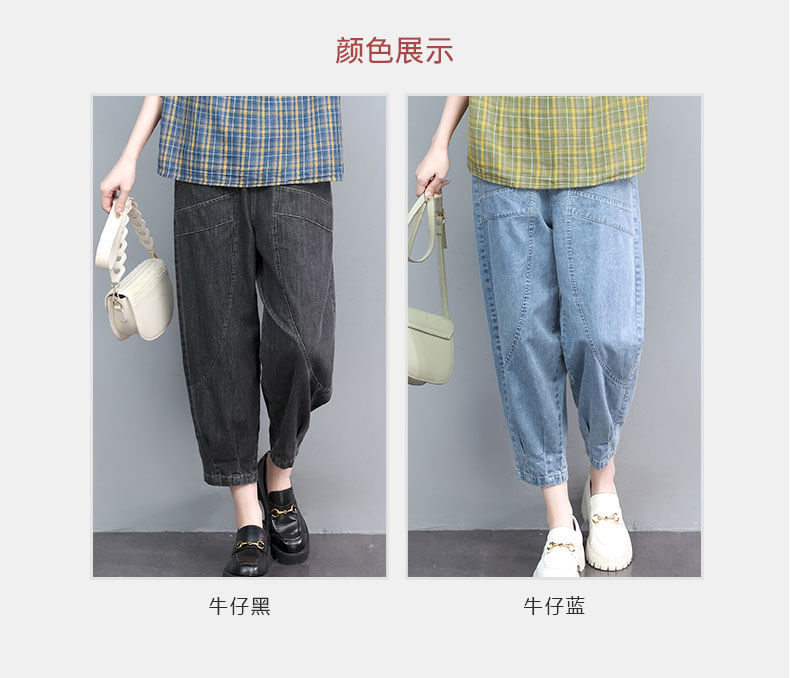薄款七分牛仔褲女夏2023秋季新款大尺碼寬鬆顯瘦九分高腰休閒哈倫褲