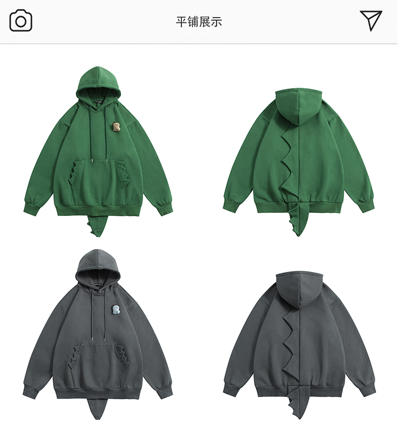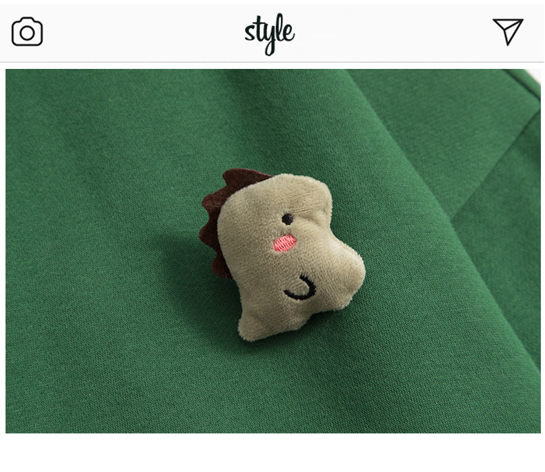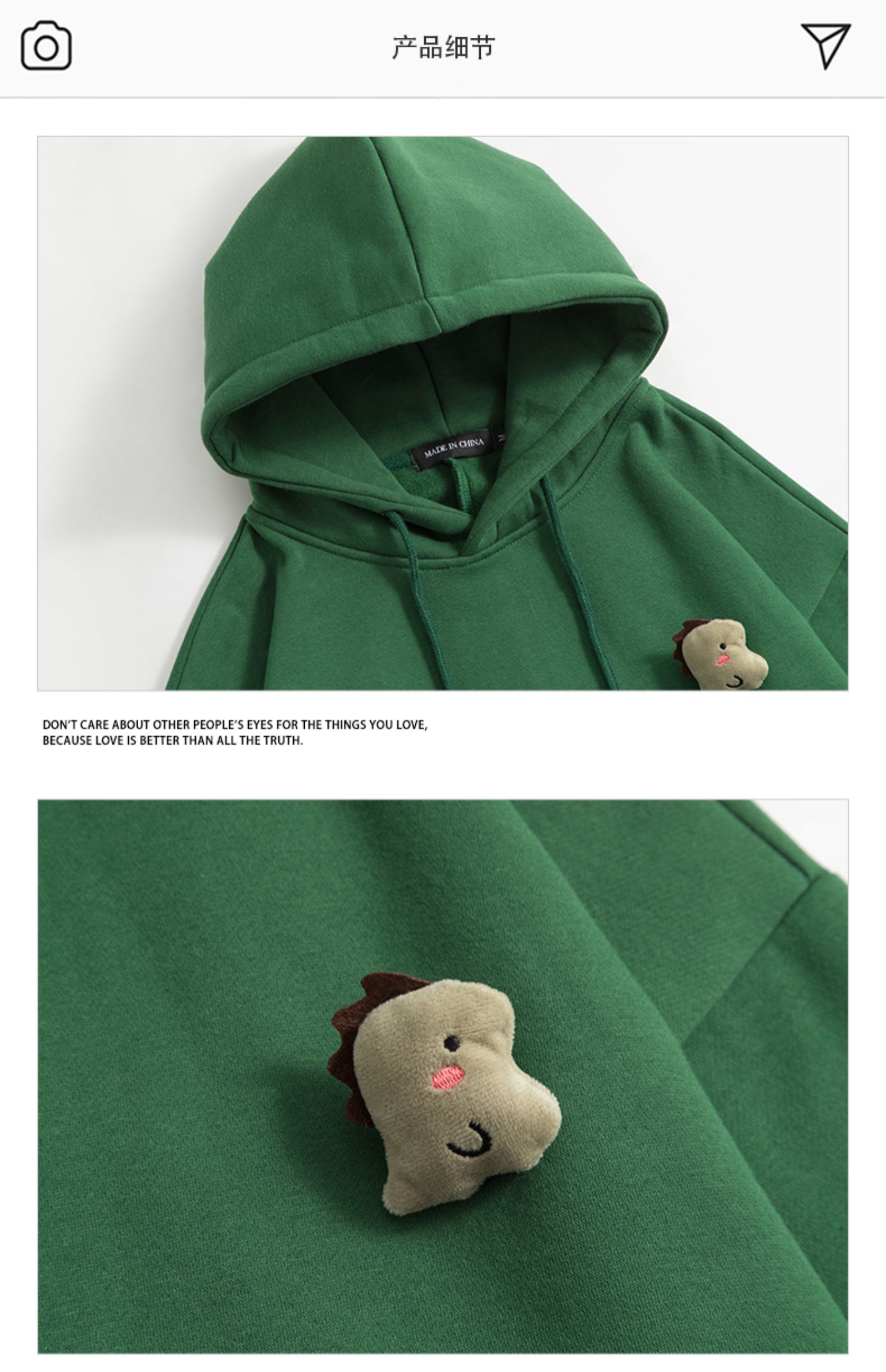 IN HOPE日系復古可愛公仔小恐龍連帽運動衫加絨寬鬆情侶百搭外套ins