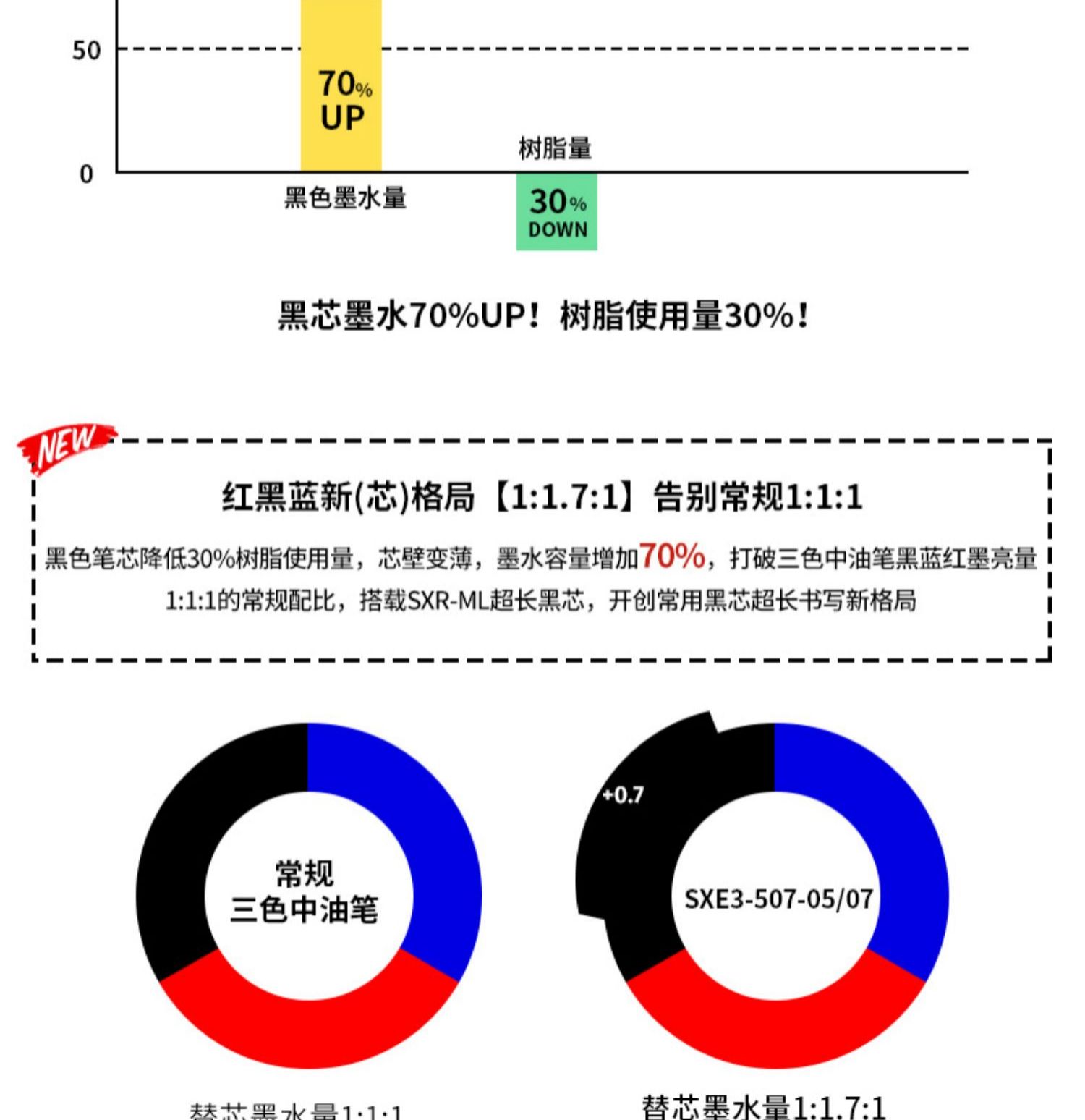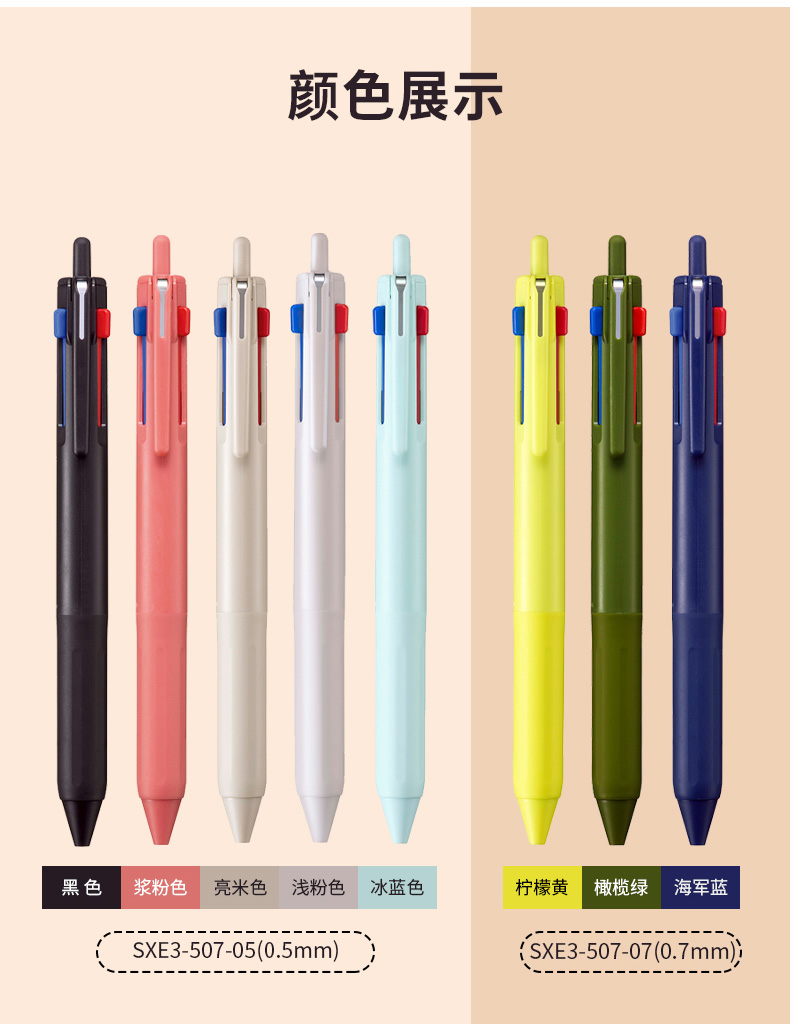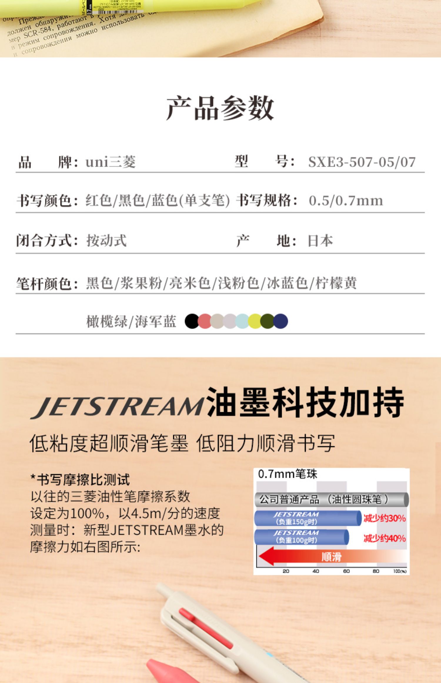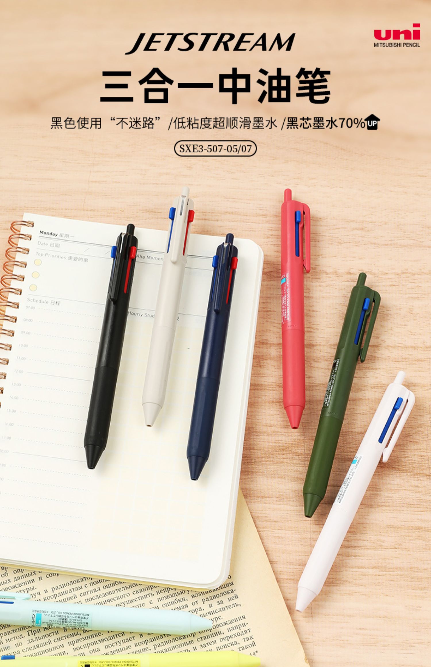 日本uni三菱Jetstream新色中油筆SXE3-507多功能按動圓珠筆黑紅藍