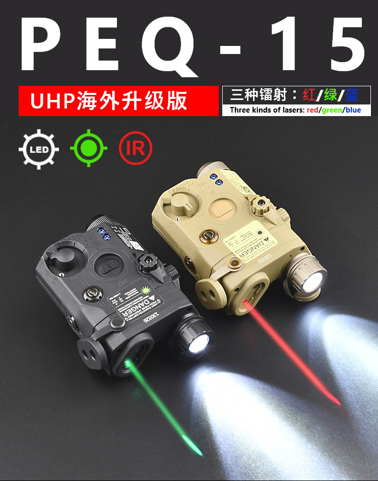 戰術PEQ15紅綠鐳射指示器M600C強光照明手電筒M300激光爆閃電池盒