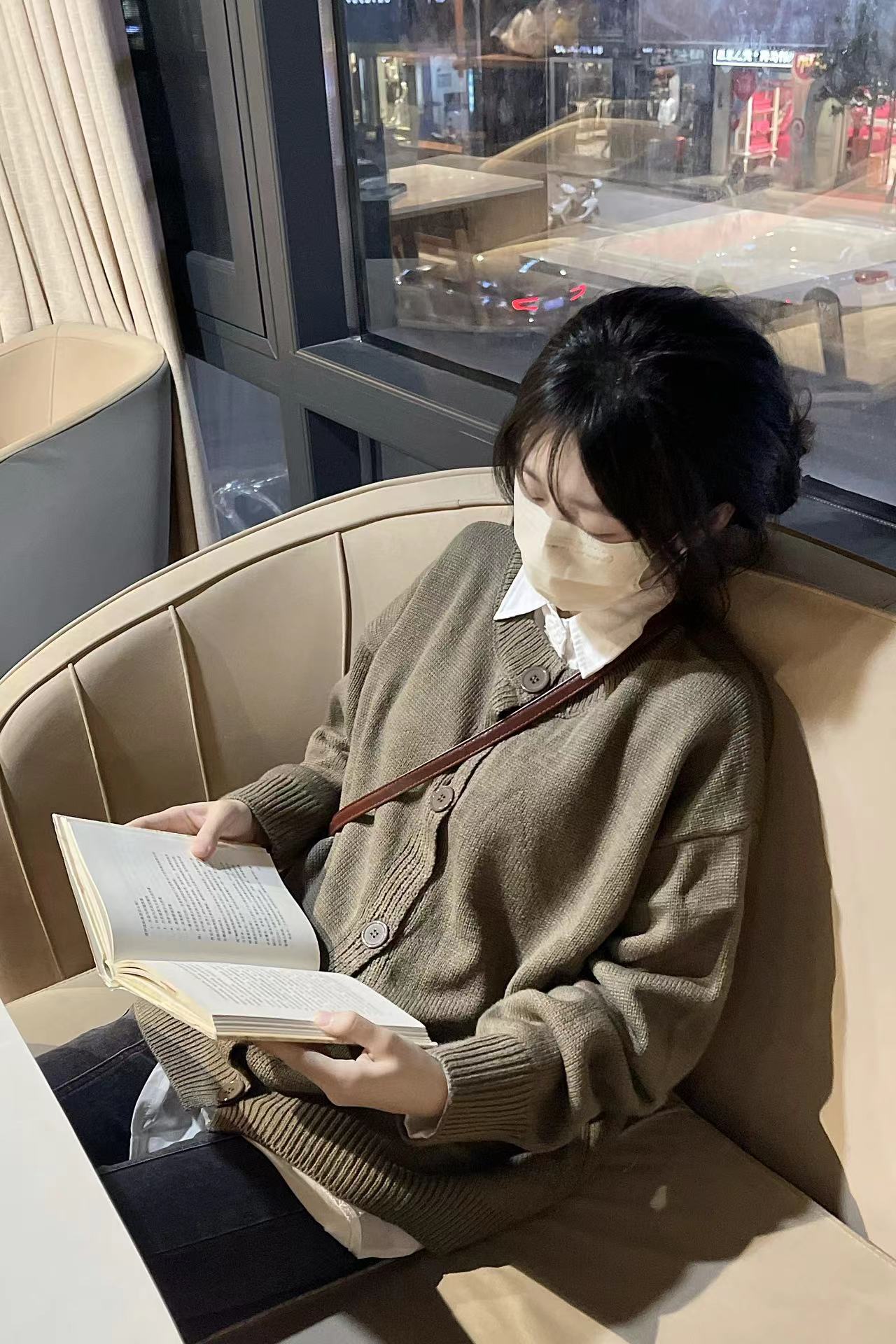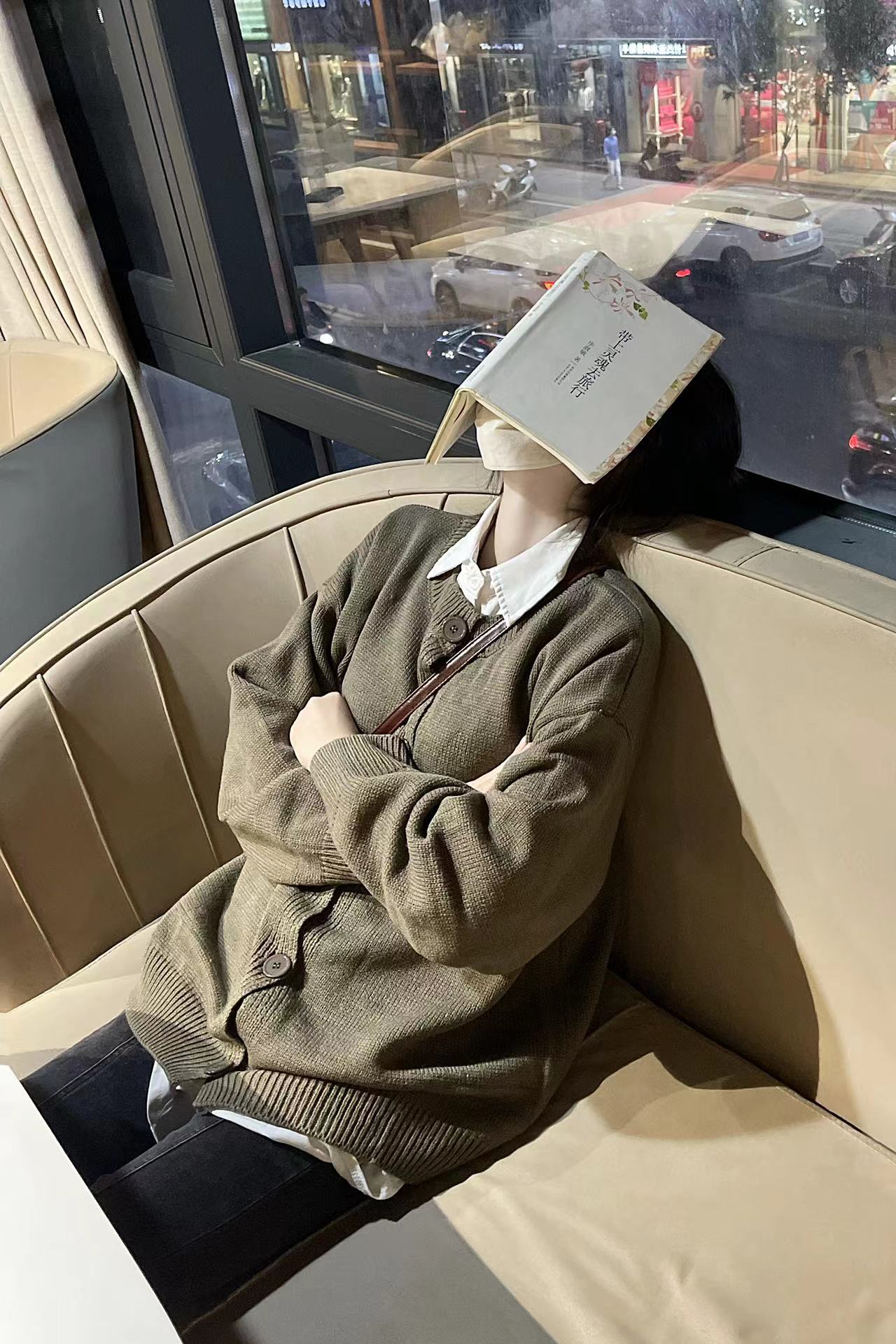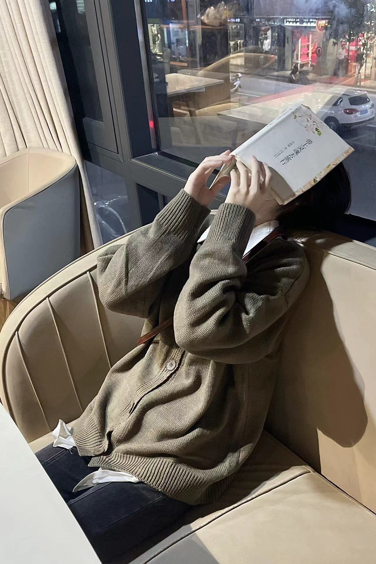 純色針織開衫毛衣秋冬復古慵懶百搭溫柔風高級設計感上衣女外套
