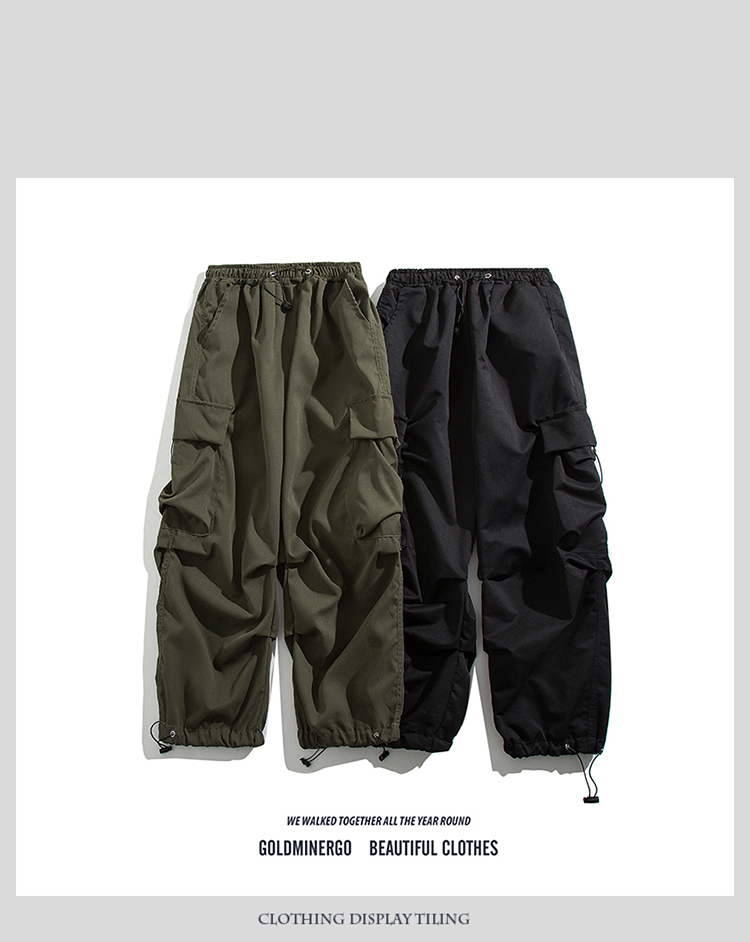 日系cityboy機能工裝褲男潮高街嘻哈痞帥寬鬆百搭休閒直筒運動褲