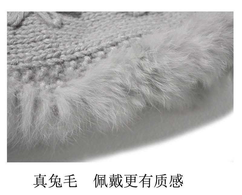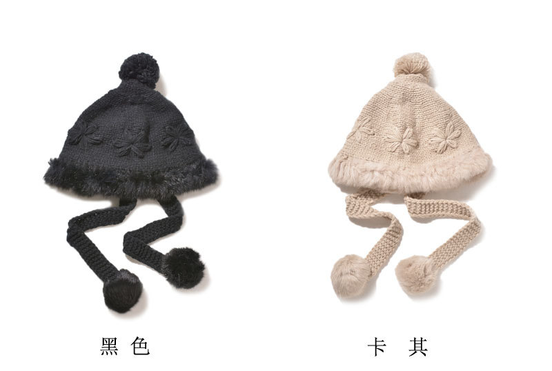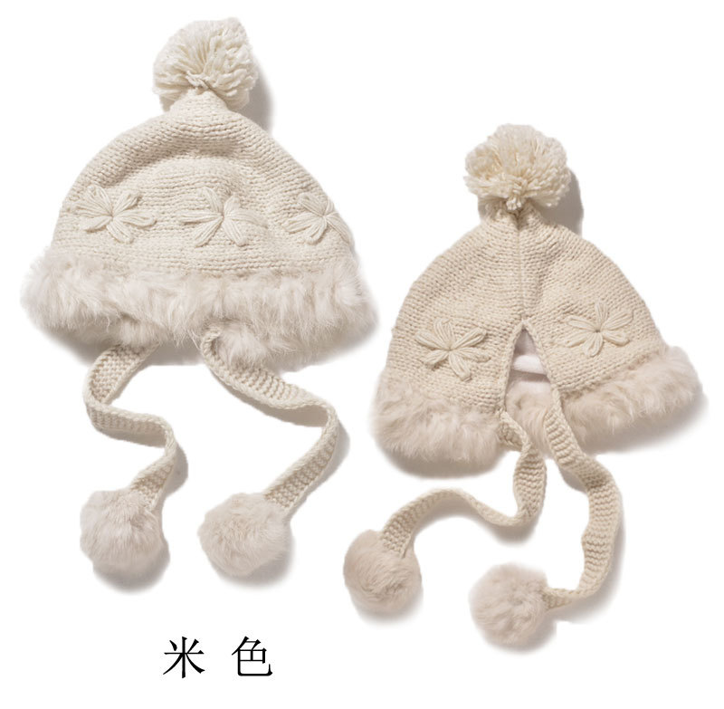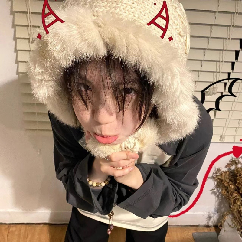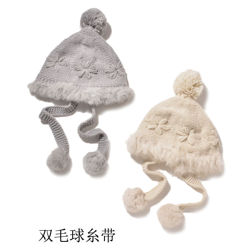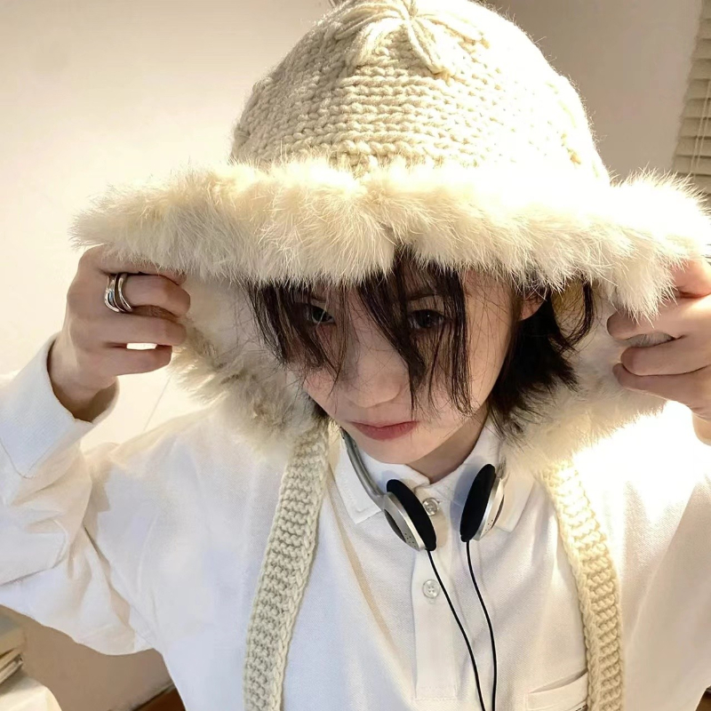 國潮手工勾花毛線帽子短髮冬季女生毛絨可愛保暖兔毛護耳日系針織