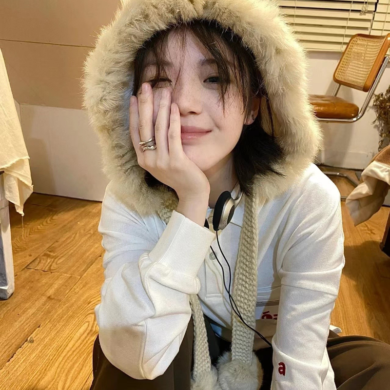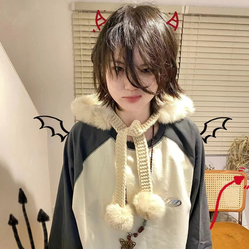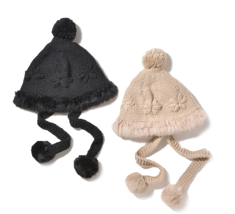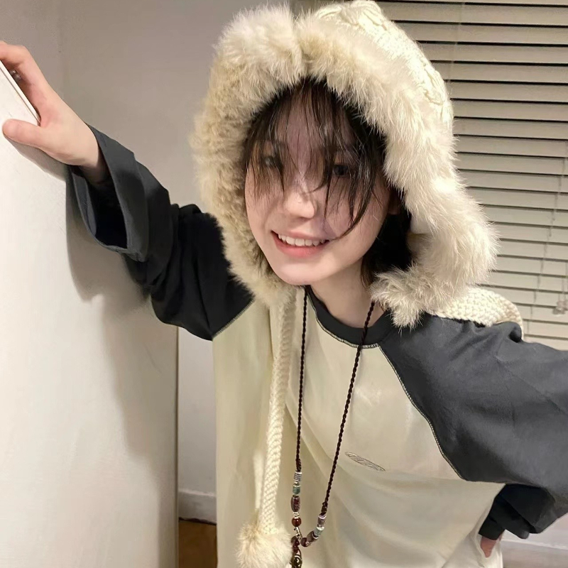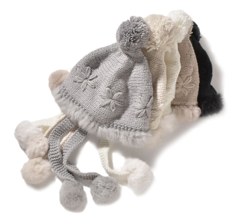 國潮手工勾花毛線帽子短髮冬季女生毛絨可愛保暖兔毛護耳日系針織