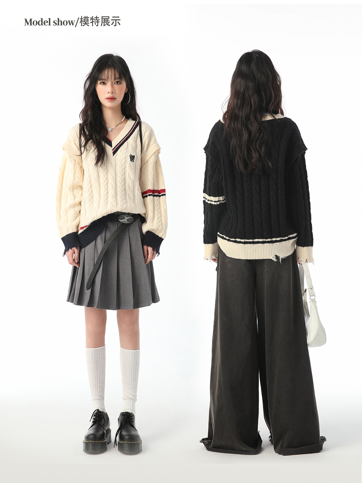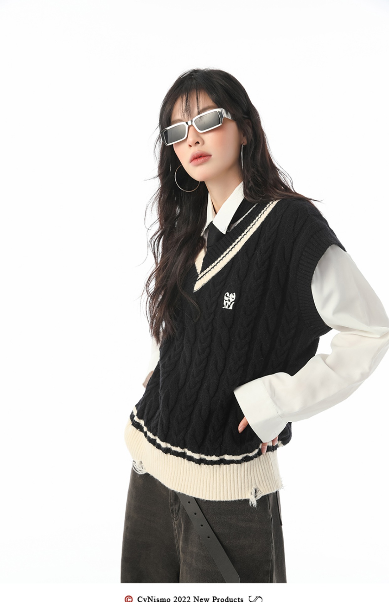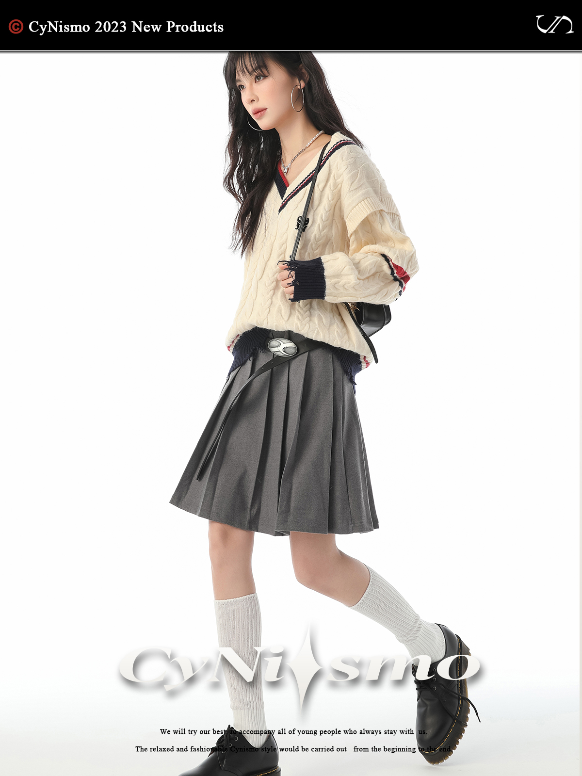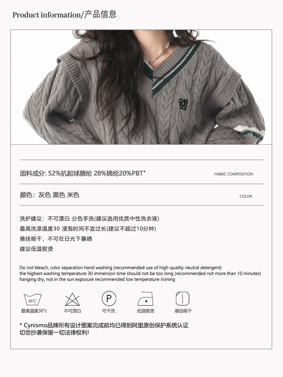 CyNi 「 Cynismo」潮牌復古學院可拆卸袖子V領針織毛衣馬甲背心