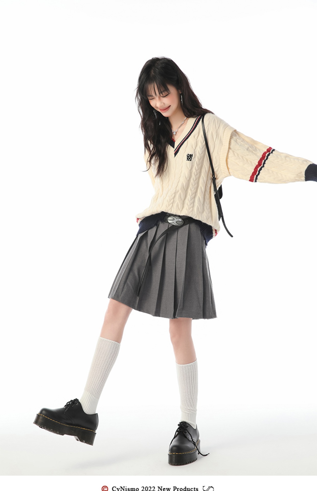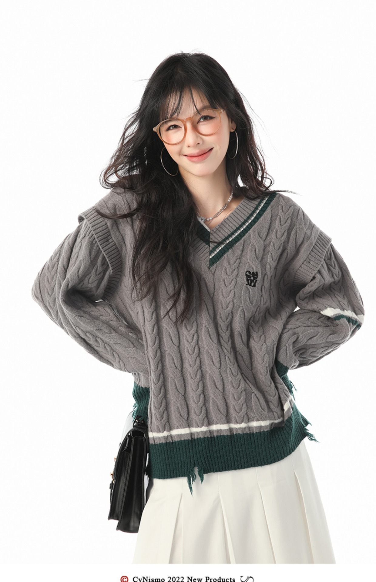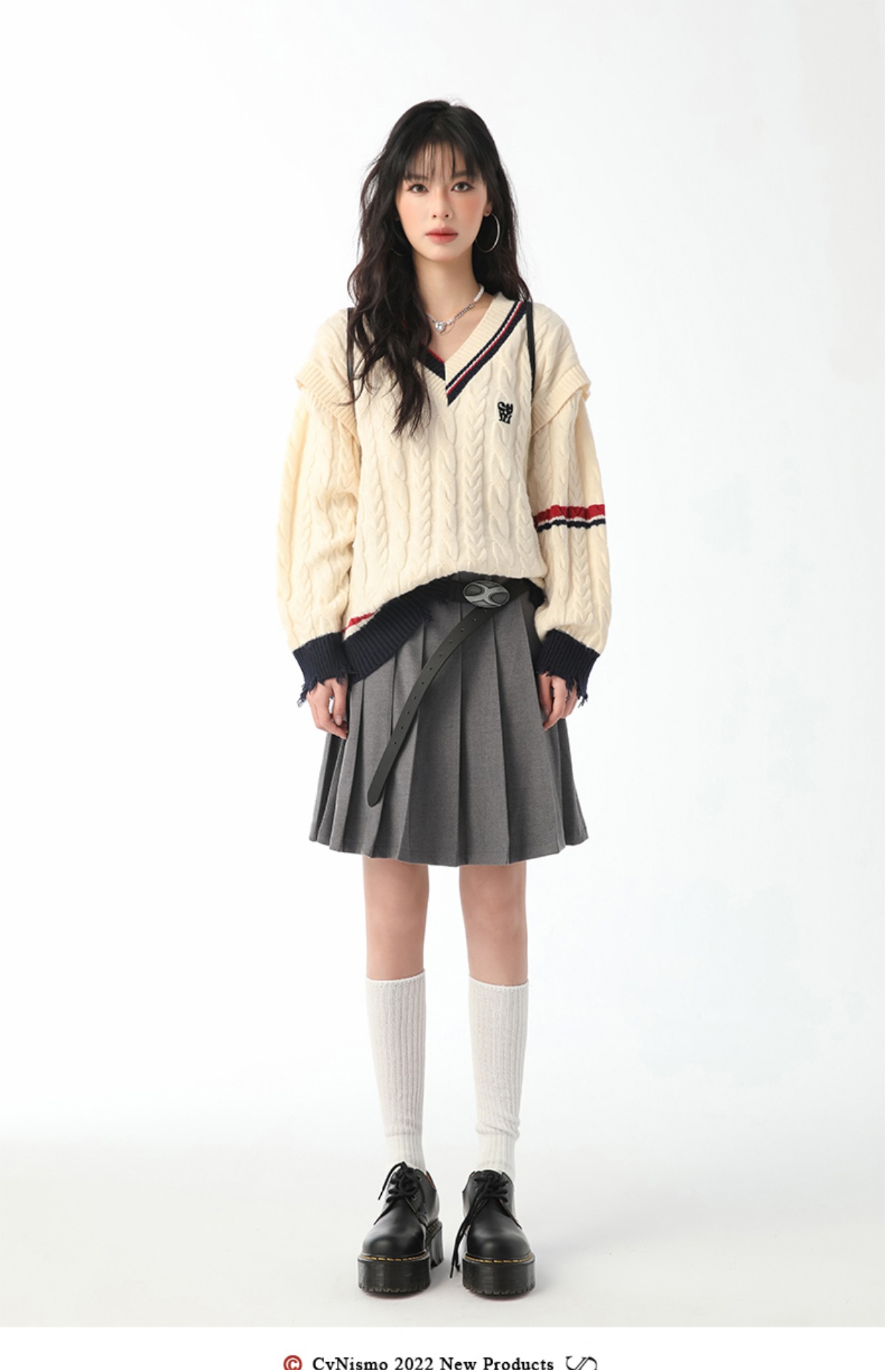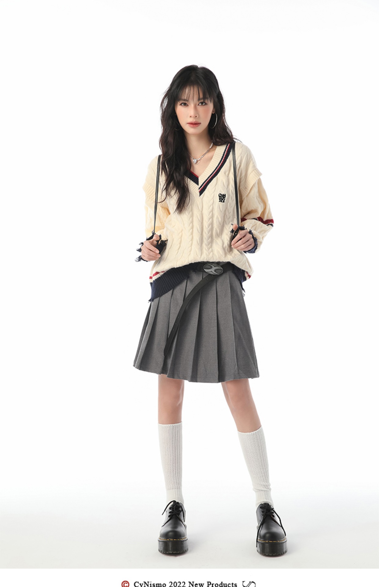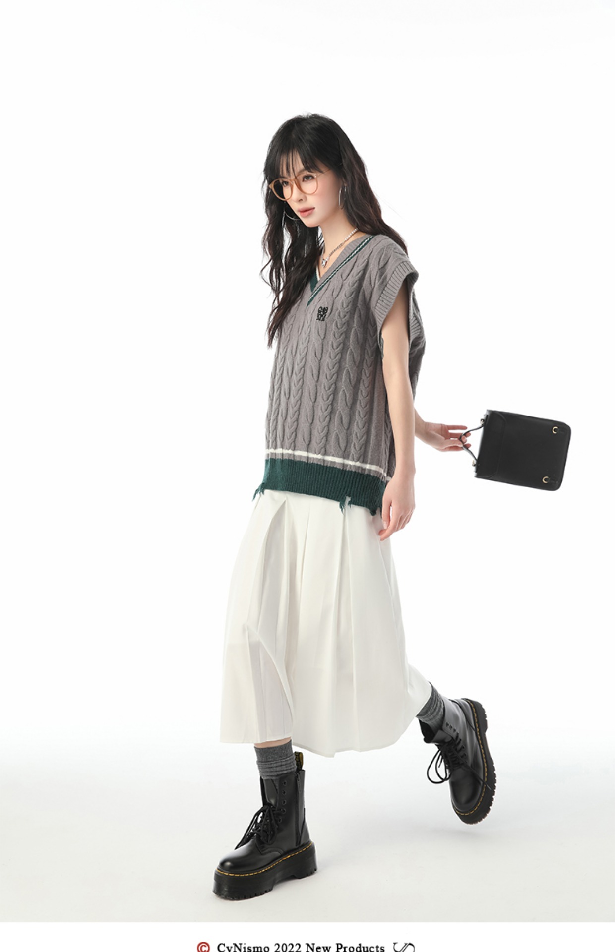 CyNi 「 Cynismo」潮牌復古學院可拆卸袖子V領針織毛衣馬甲背心