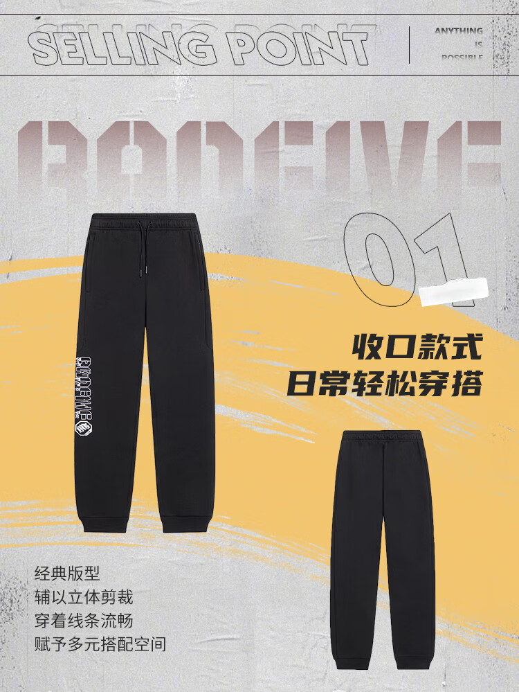 李寧衛褲男士2022秋季反伍草木皆兵束腳休閒針織運動長褲AKLS641