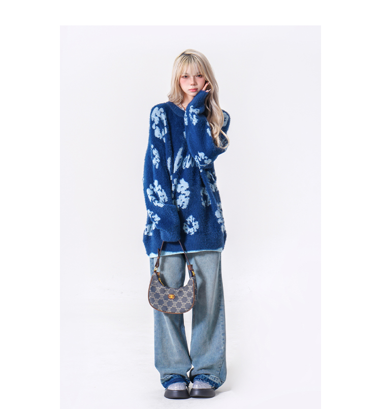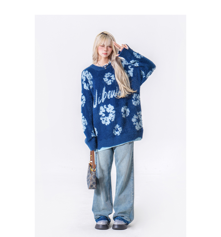 南一夢UXEIS溫柔系水貂絨小個子毛衣女厚實秋冬設計感針織衫上衣