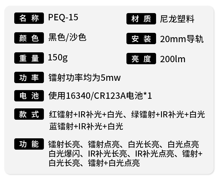 顏色分類 紅鐳射PEQ+M300A+雙切(黑色),紅鐳射PEQ+M300A+雙切(沙色),紅鐳射PEQ+M600C+雙切(黑色),紅鐳射PEQ+M600C+雙切(沙色),綠鐳射PEQ+M300A+雙切(黑色),綠鐳射PEQ+M300A+雙切(沙色),綠鐳射PEQ+M600C+雙切(黑色),綠鐳射PEQ+M600C+雙切(沙色),peq15紅激光+白光爆閃+IR補光(黑),peq15紅激光+白光爆閃+IR補光(沙),peq15綠激光+白光爆閃+IR補光(黑),peq15綠激光+白光爆閃+IR補光(沙),peq15藍激光+白光爆閃+IR補光(黑),peq15藍激光+白光爆閃+IR補光(沙),peq15紅激光+白光爆閃+IR鐳射(黑),peq15紅激光+白光爆閃+IR鐳射(沙),peq15綠激光+白光爆閃+IR鐳射(黑),peq15綠激光+白光爆閃+IR鐳射(沙),peq15藍激光+白光爆閃+IR鐳射(黑),peq15藍激光+白光爆閃+IR鐳射(沙),黑-單紅激光+M300A+雙切鼠尾套裝,沙-單紅激光+M300A+雙切鼠尾套裝,黑-單綠激光+M300A+雙切鼠尾套裝,沙-單綠激光+M300A+雙切鼠尾套裝