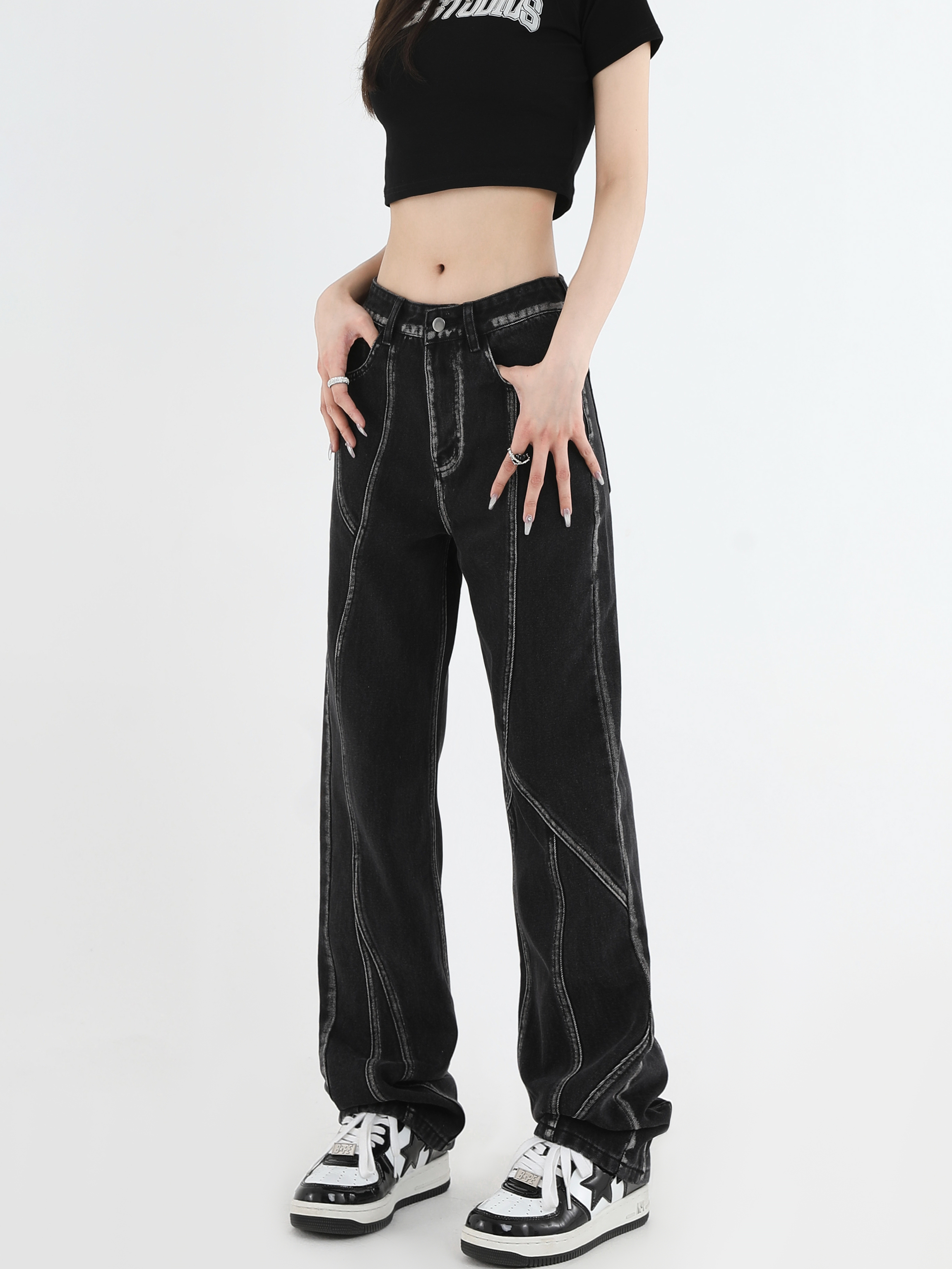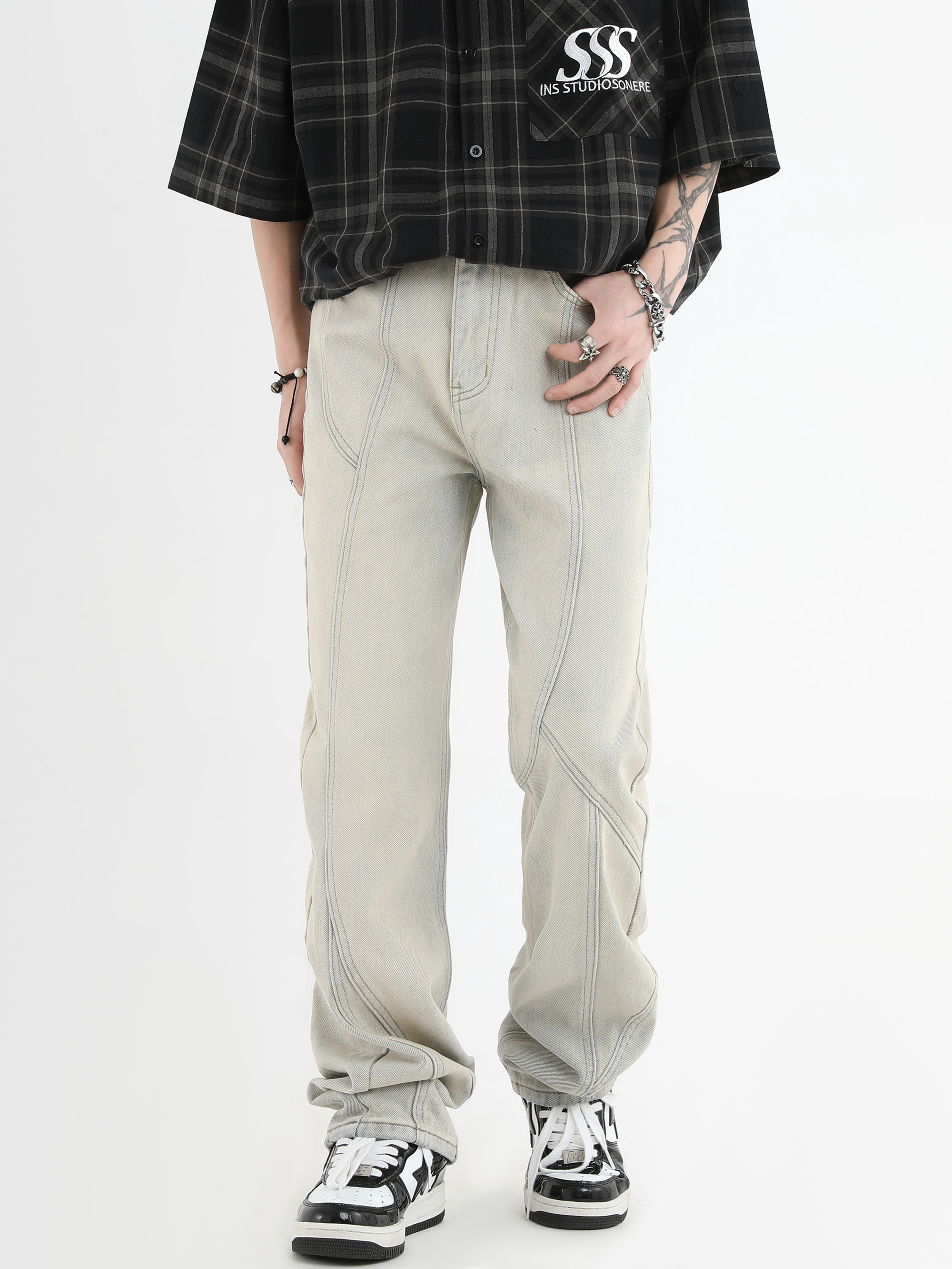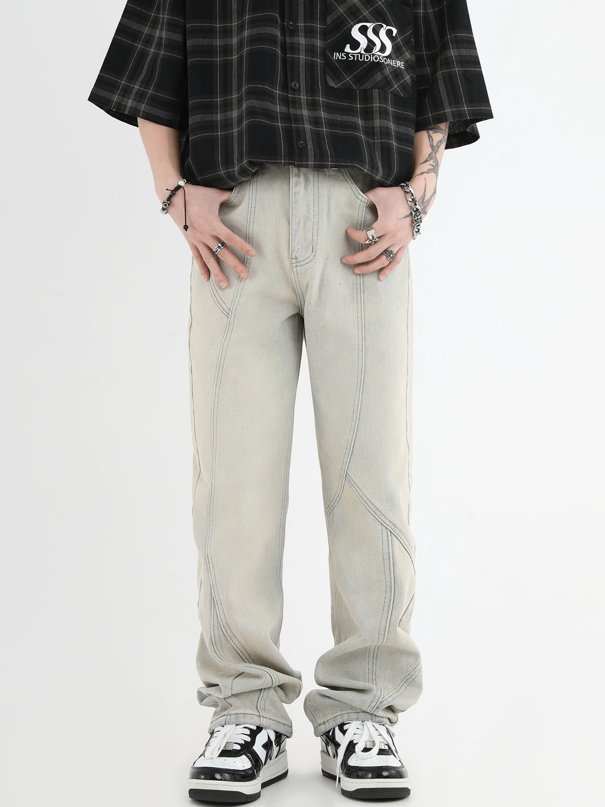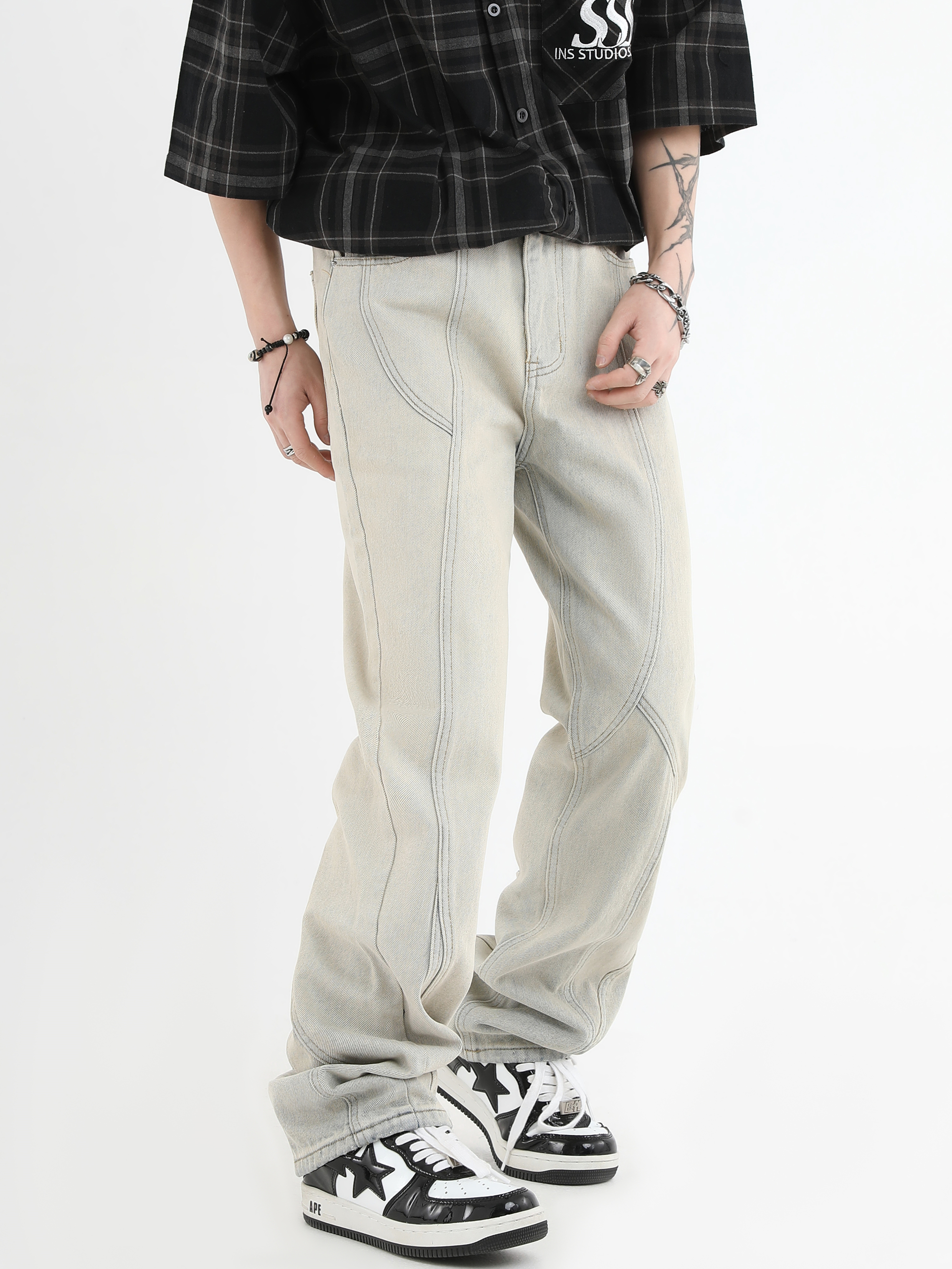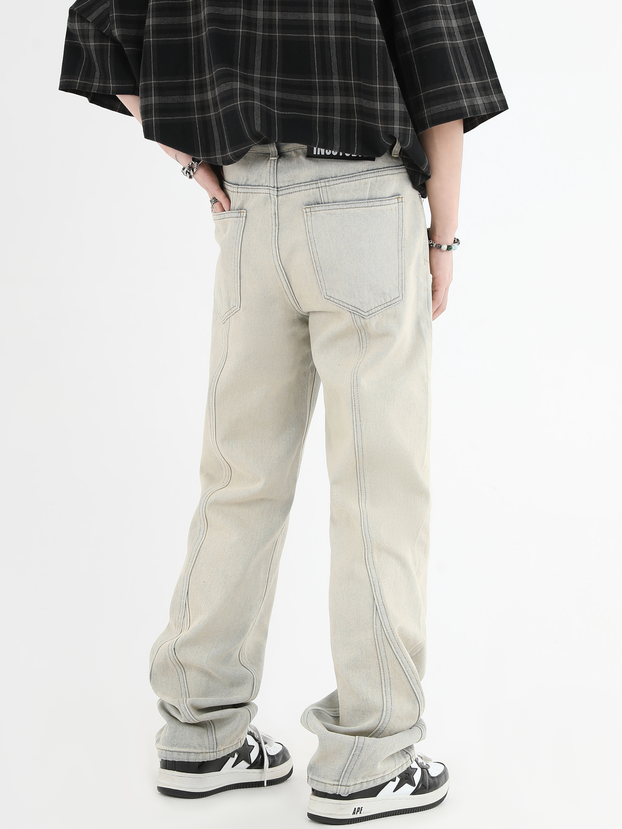 【INSKR】國潮牌情侶美式復古做舊洗水牛仔褲設計感直筒褲子男女