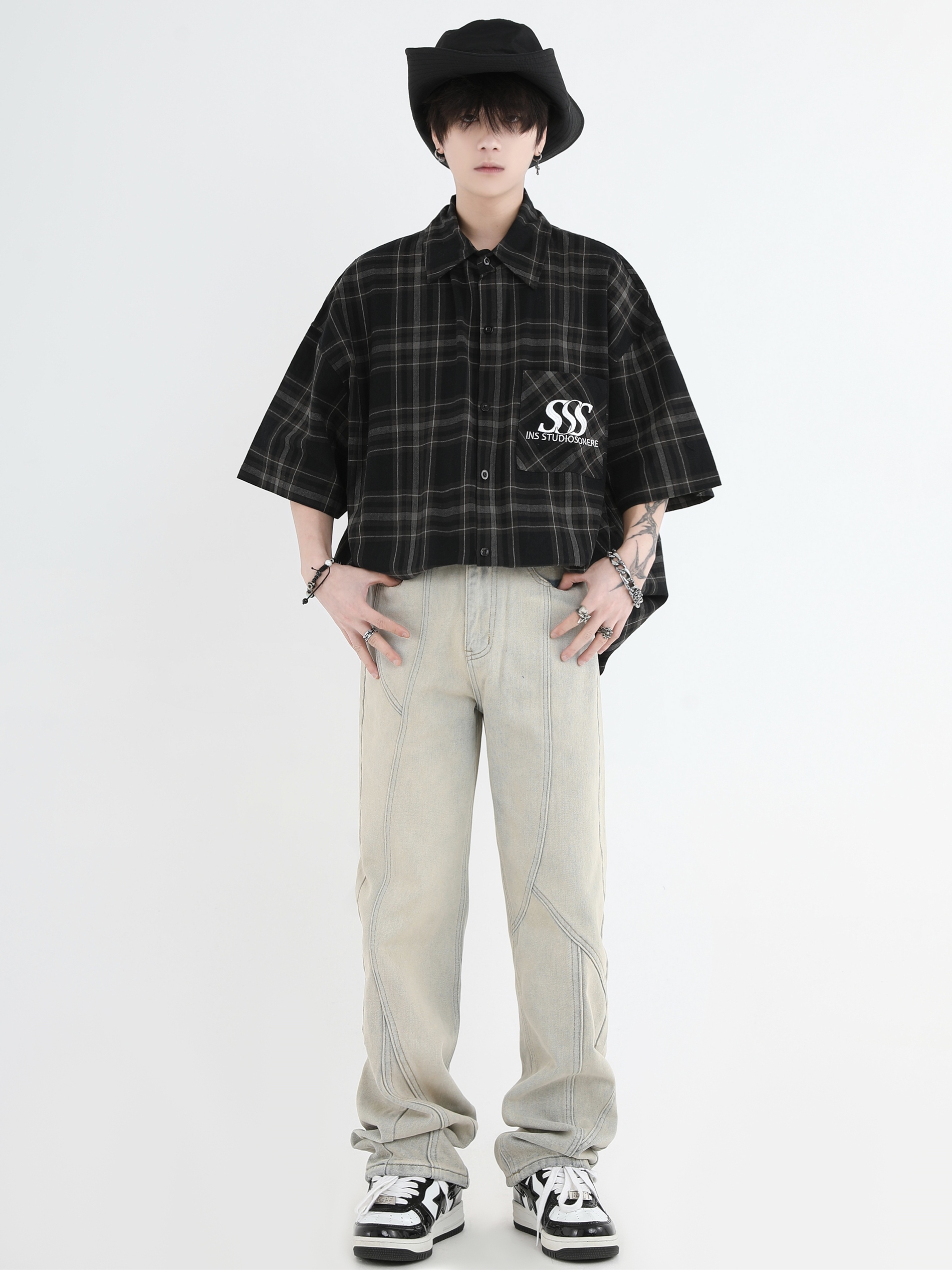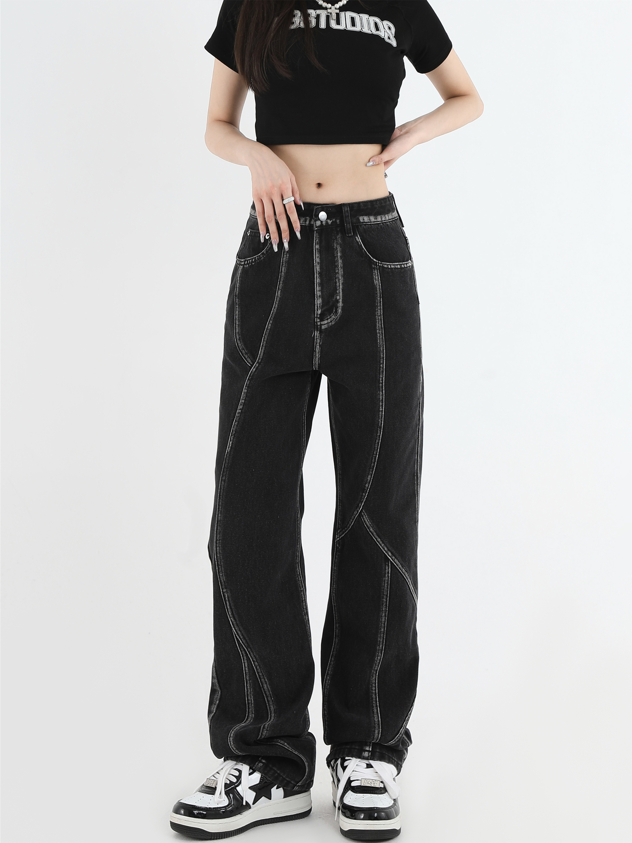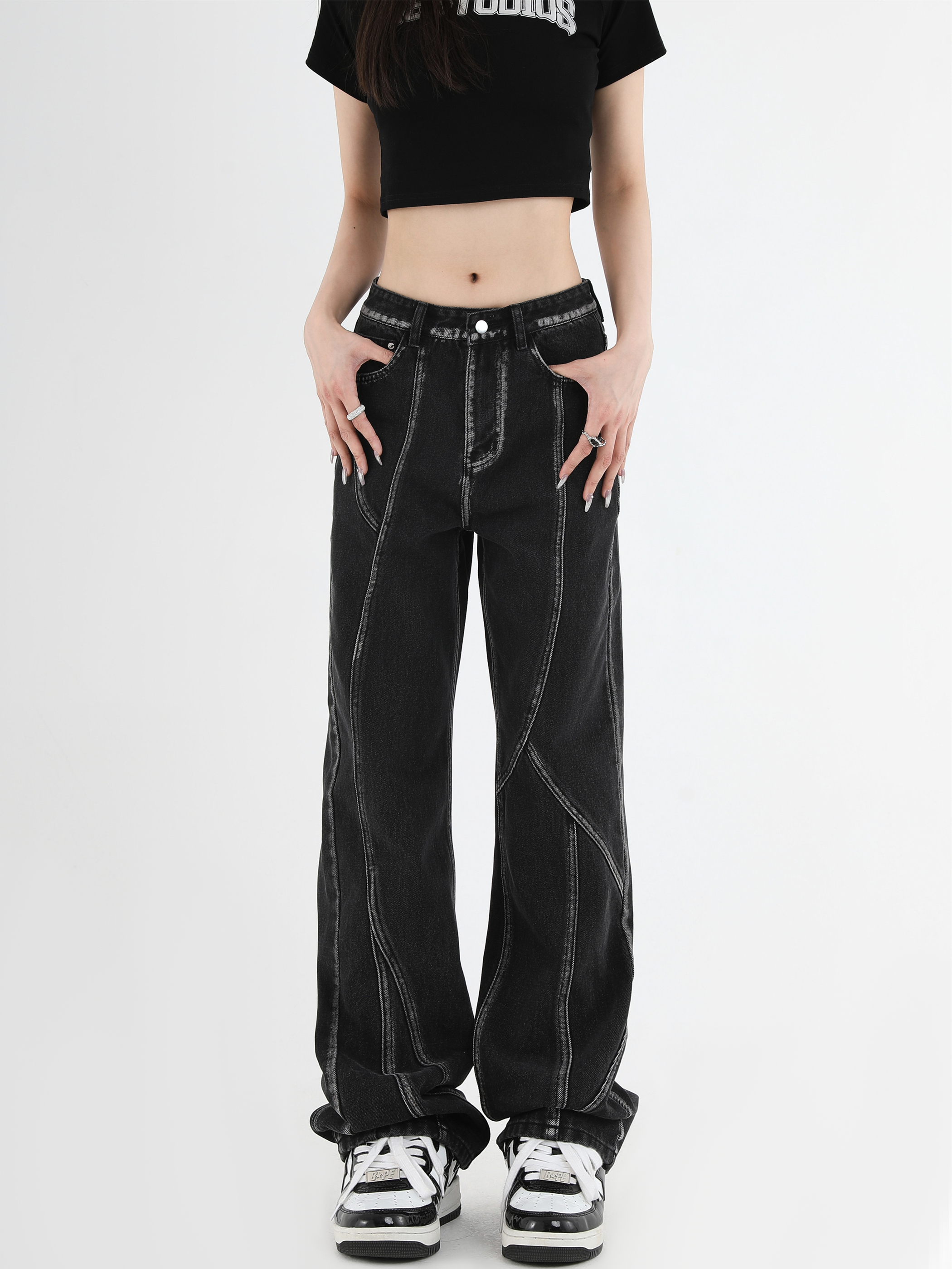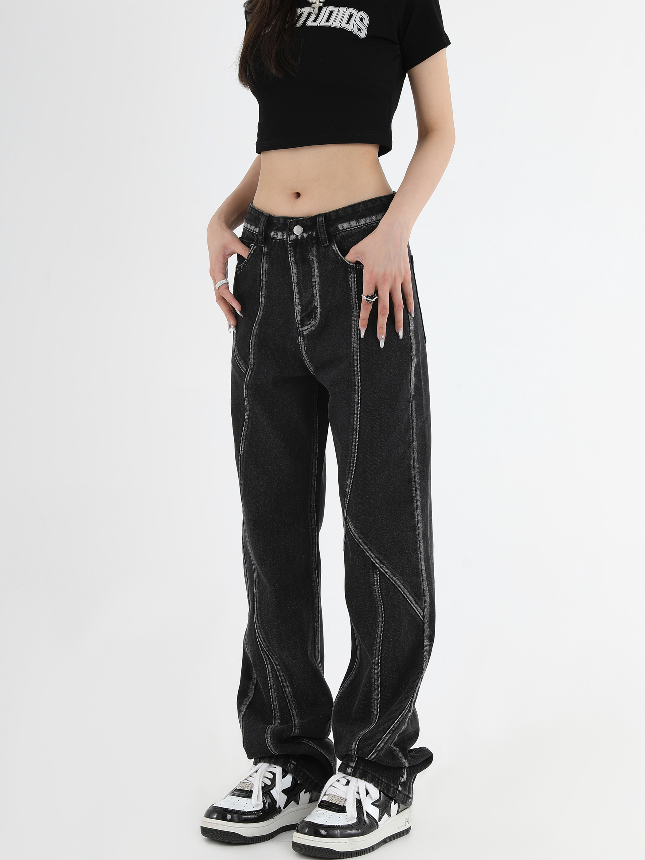【INSKR】國潮牌情侶美式復古做舊洗水牛仔褲設計感直筒褲子男女