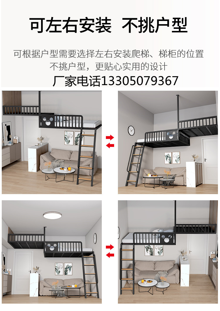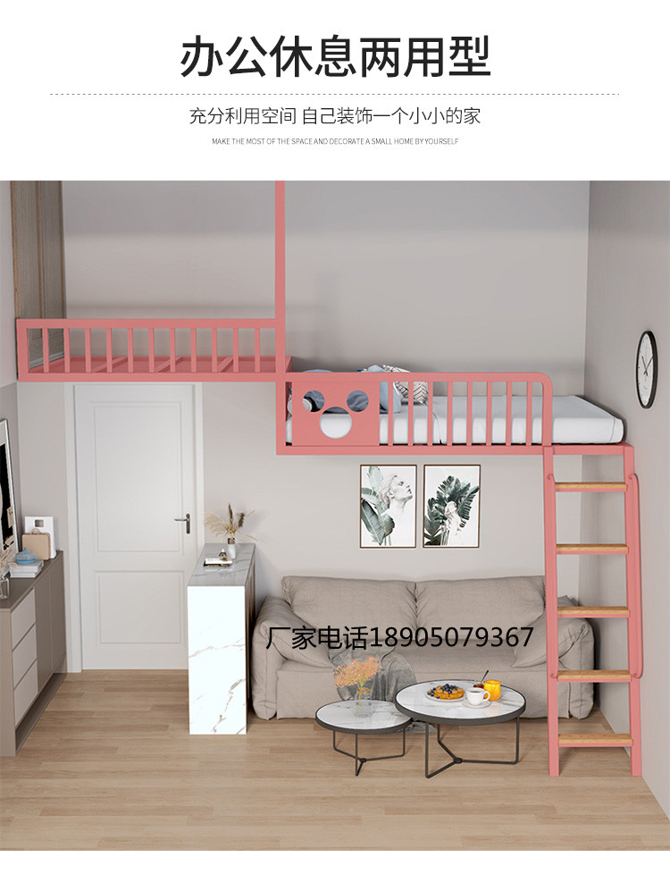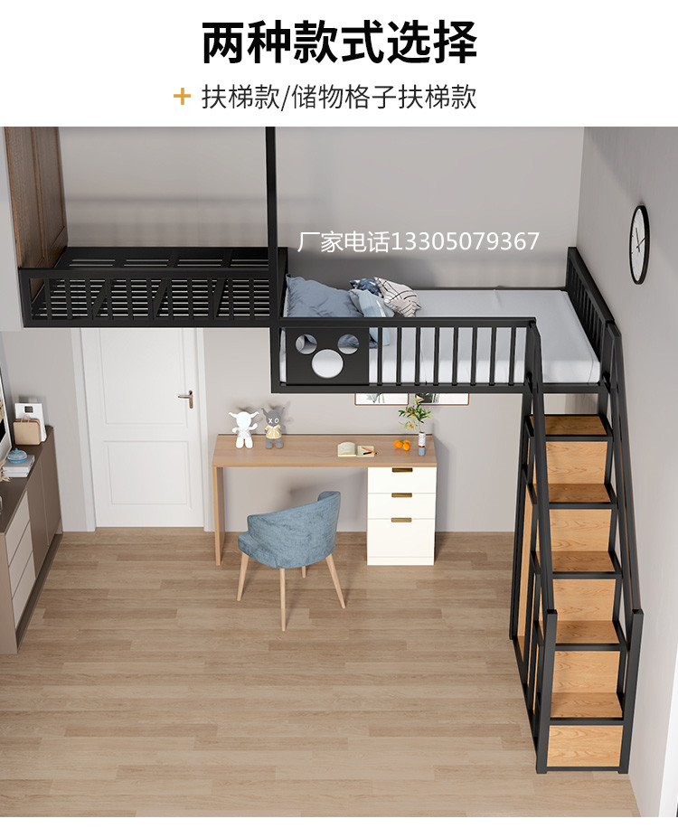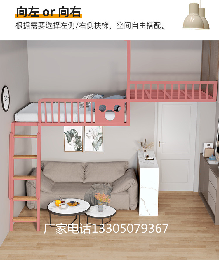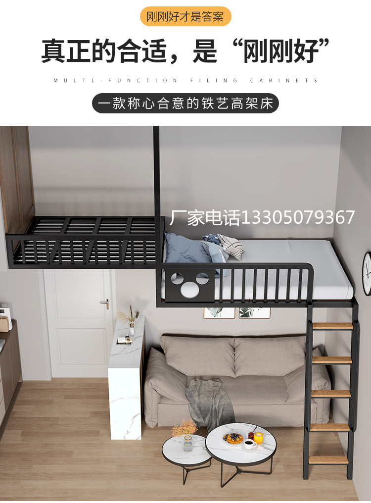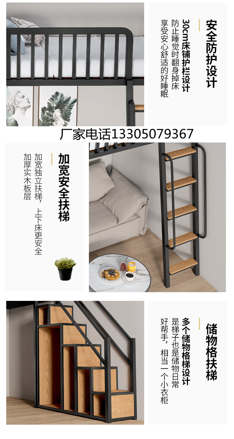 省空間閣樓高架牀多功能鐵架牀複試二樓牀簡約輕奢兒童梯櫃牀定製