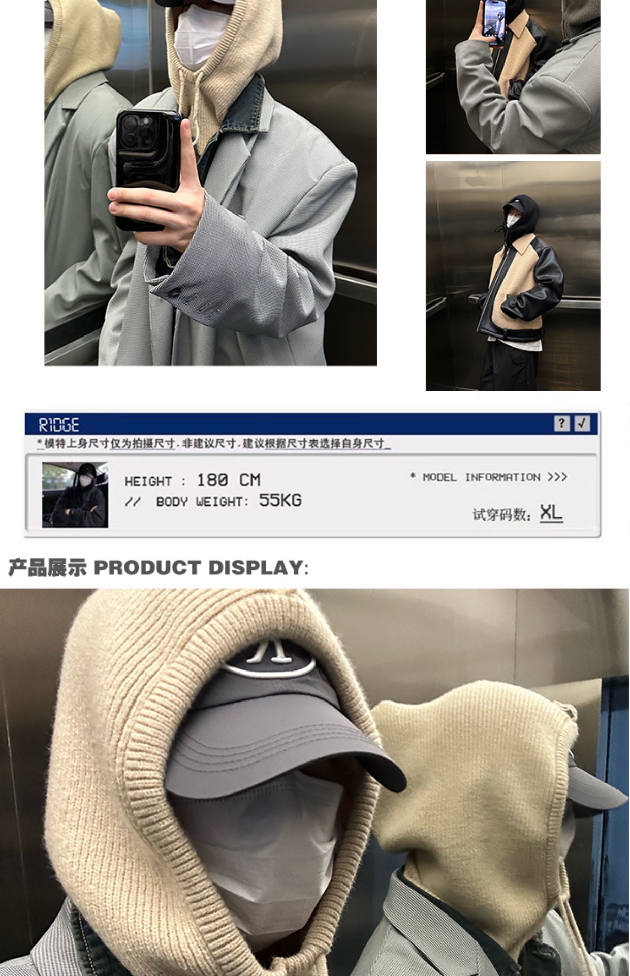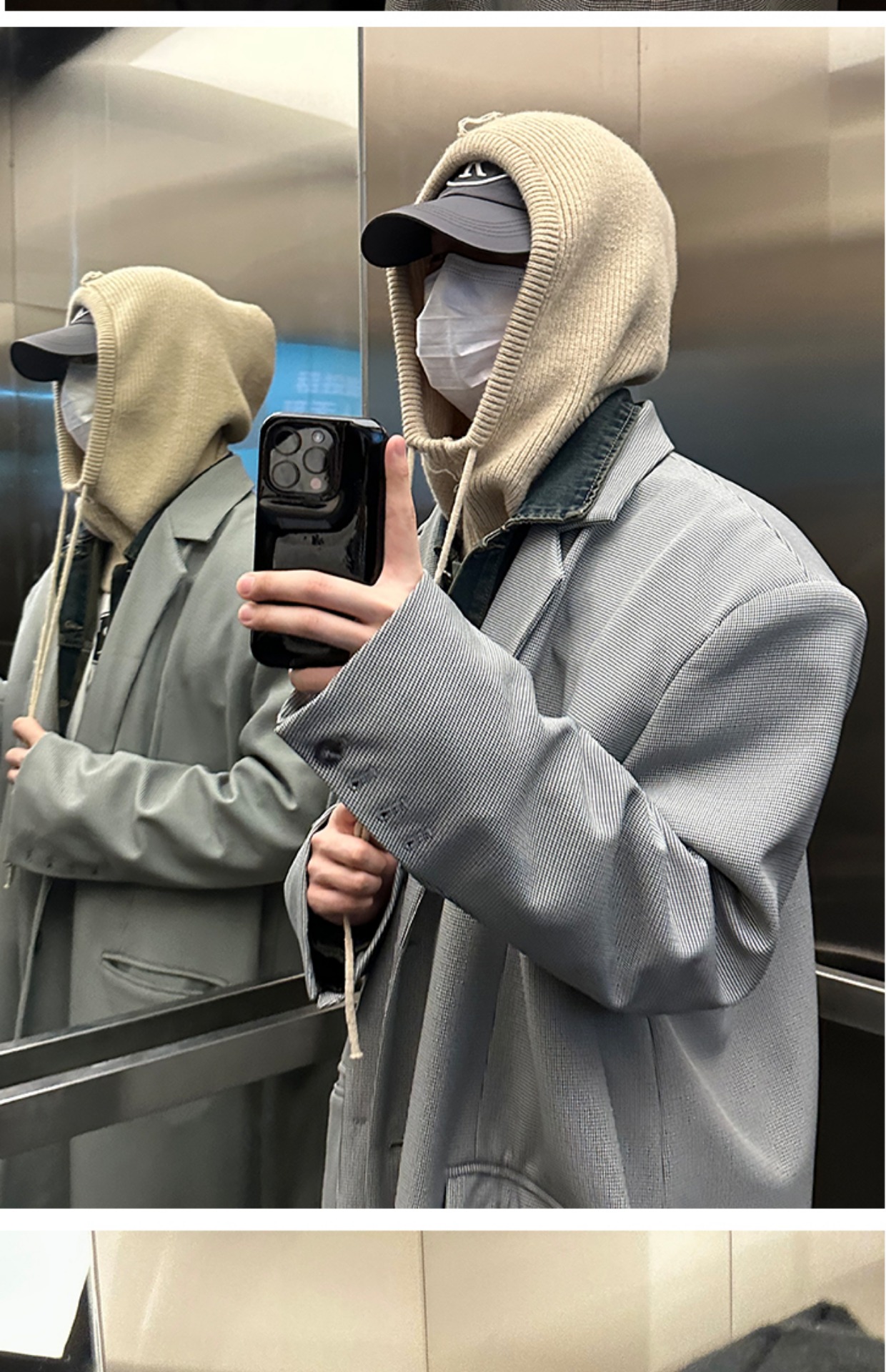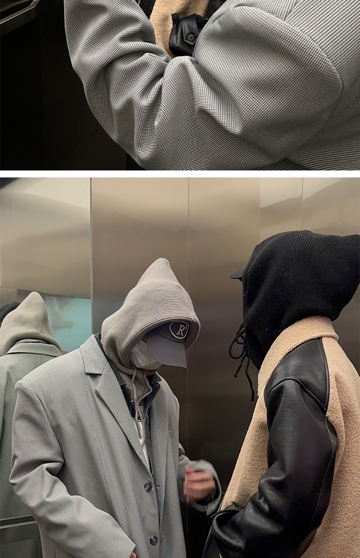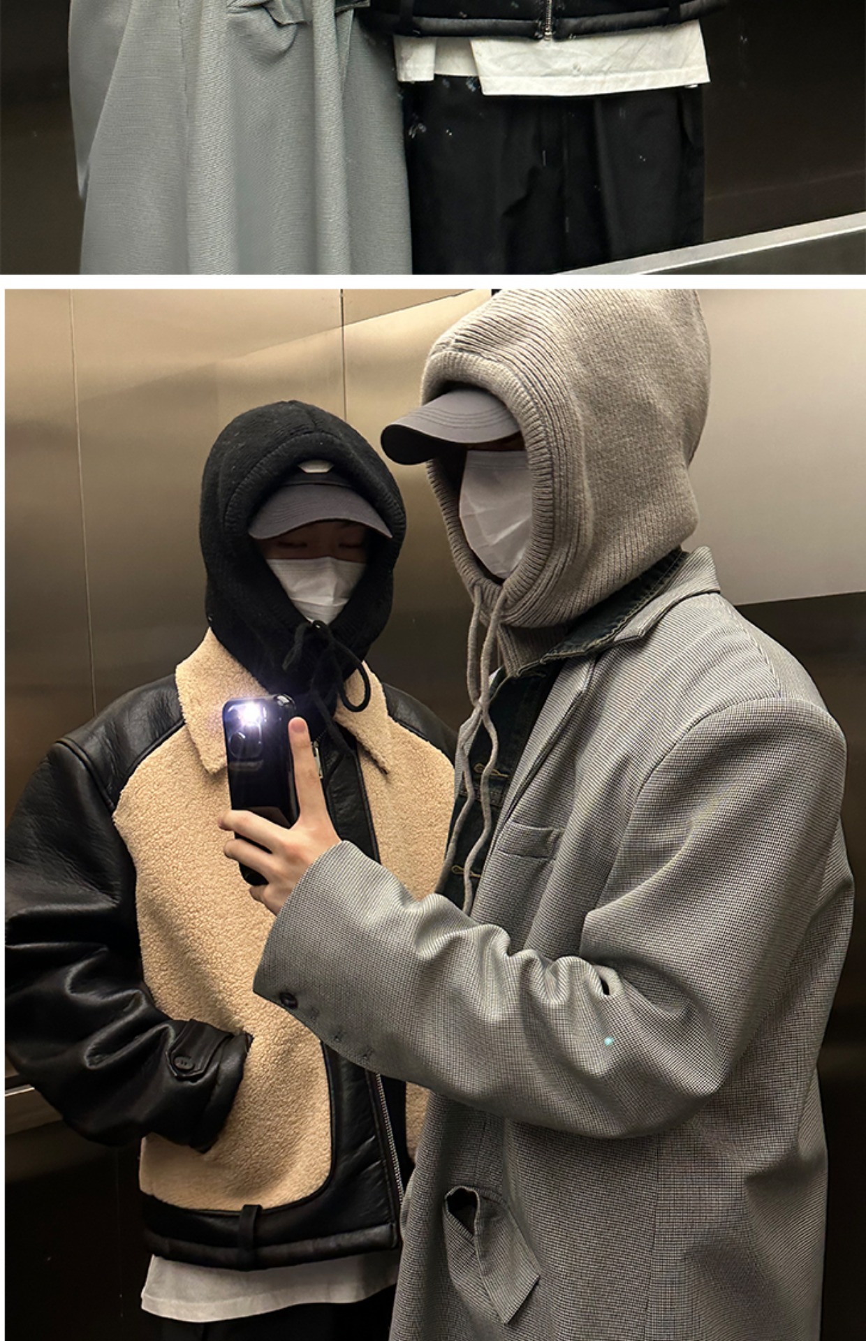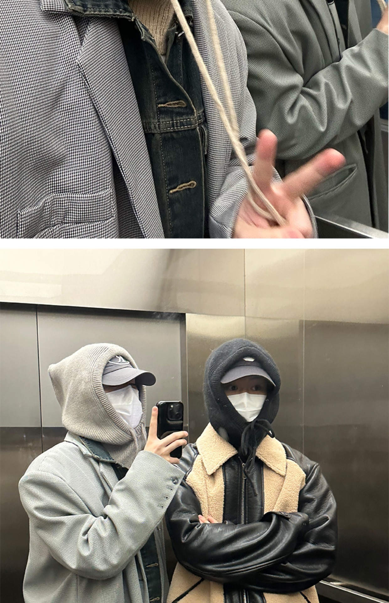 R1DGE 街頭時尚帽子圍巾一體冬季防風保暖包頭帽男護勃針織帽女潮