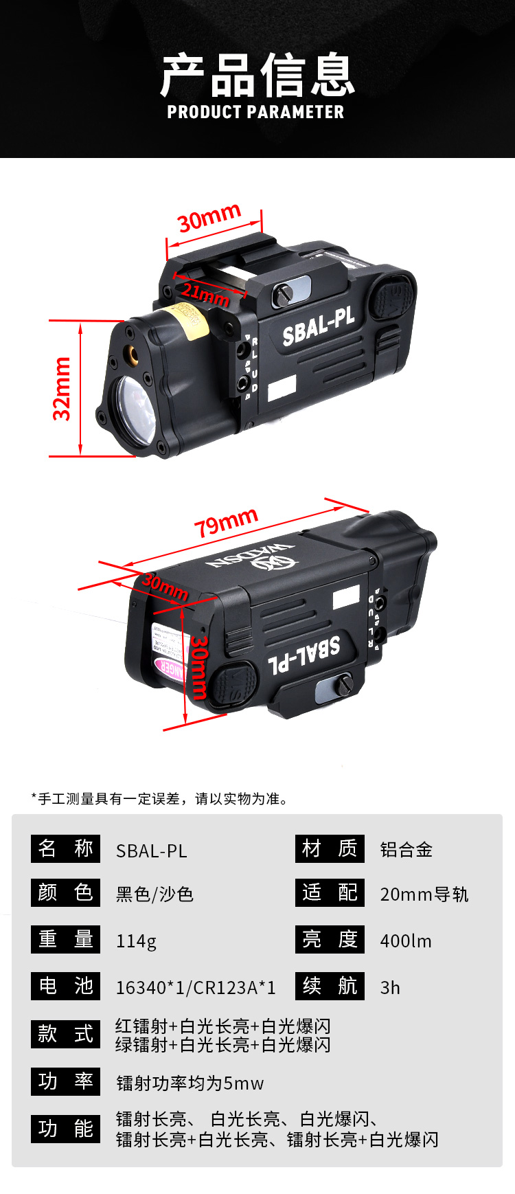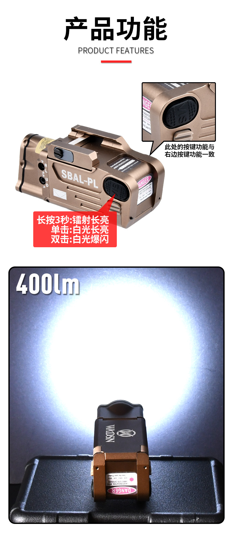 SBAL戰術下掛手電筒紅外線VP9激光P1鐳射爆閃G17M9溪流之光X300X400