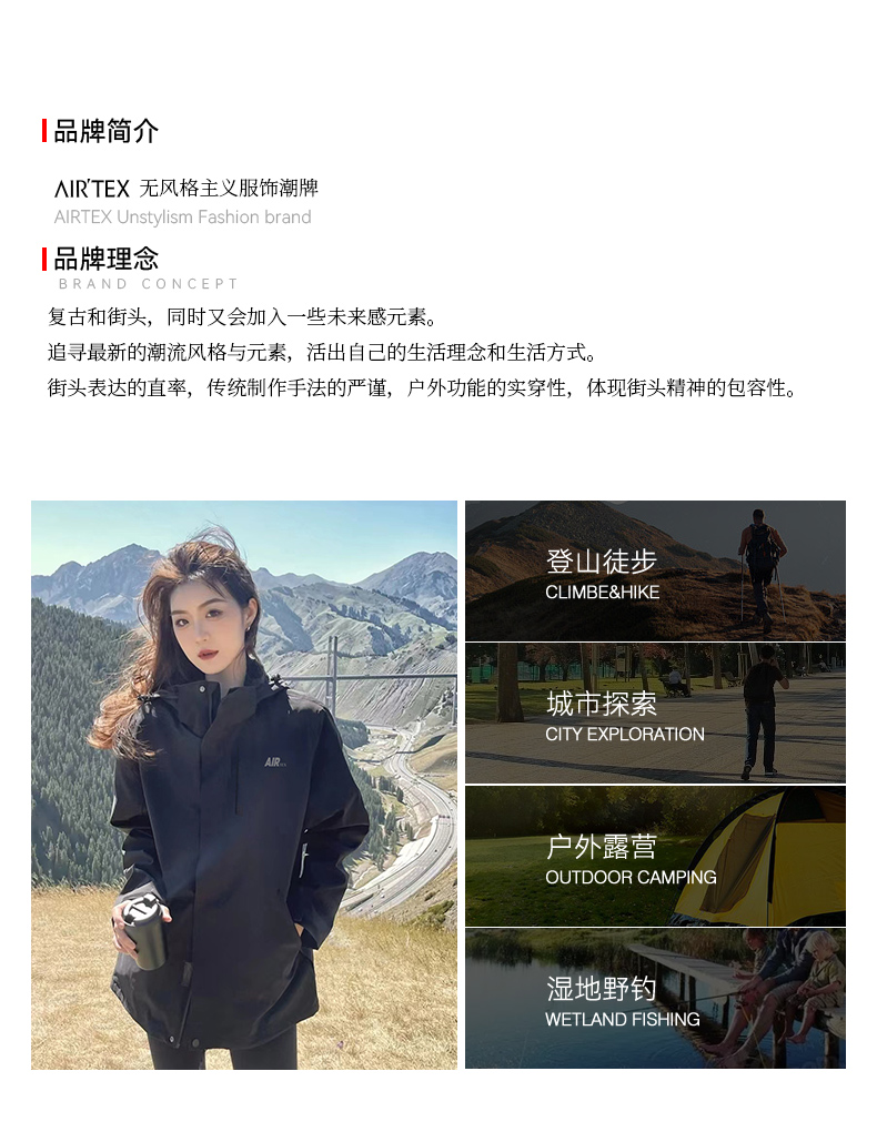 AIRTEX亞特情侶衝鋒衣男女三合一可拆卸戶外防風防水滑雪外套進藏