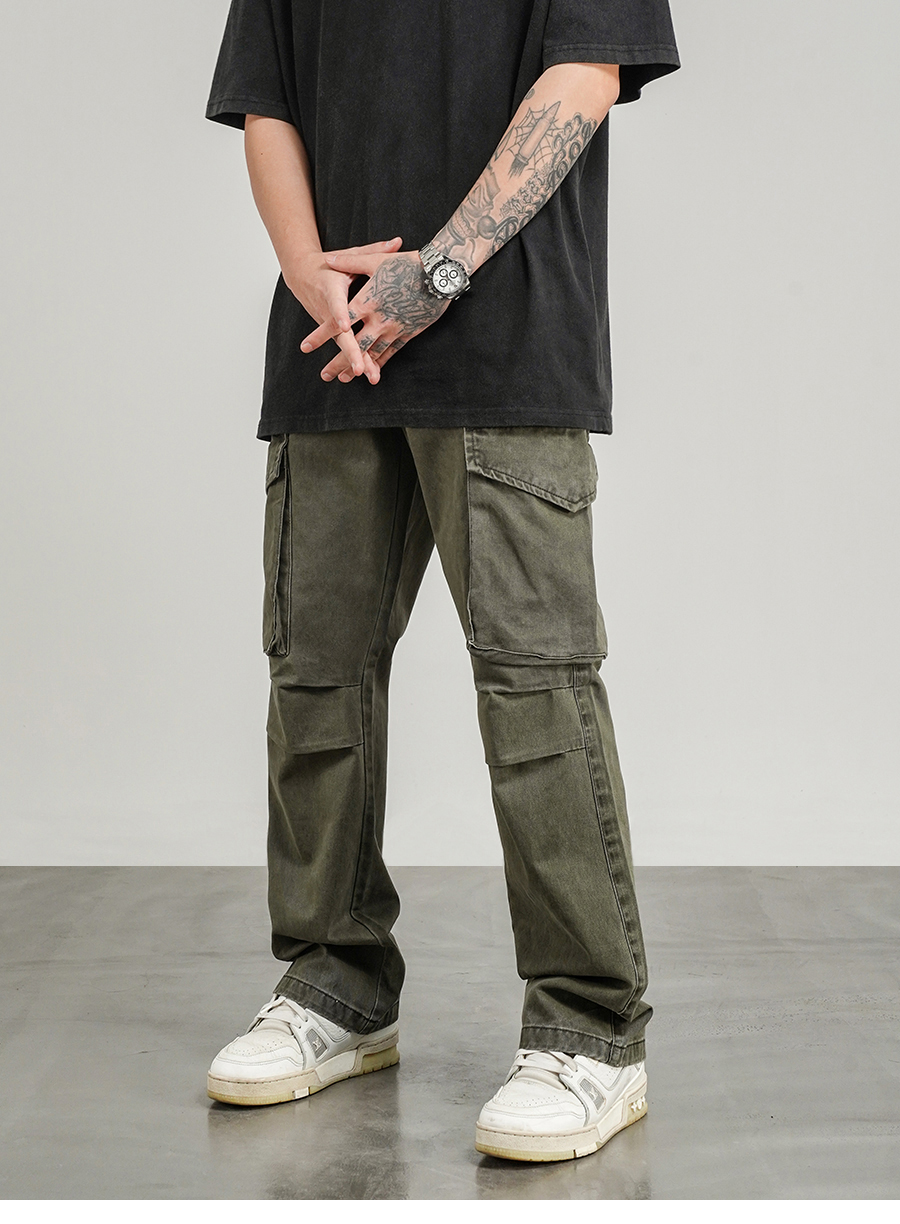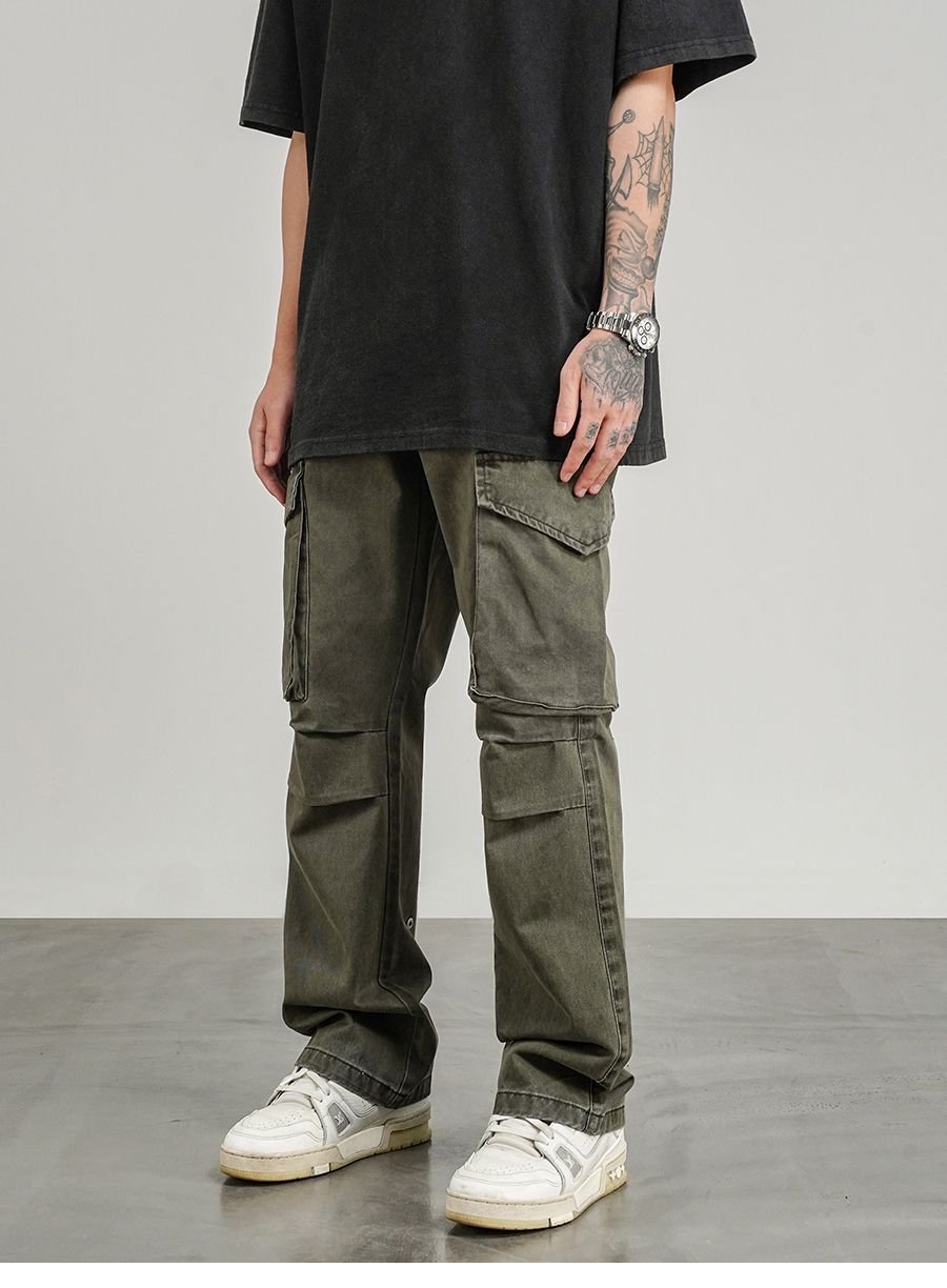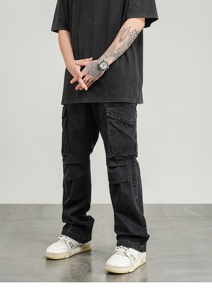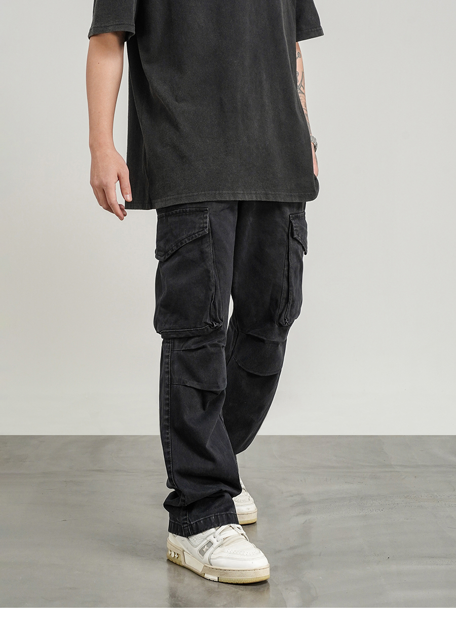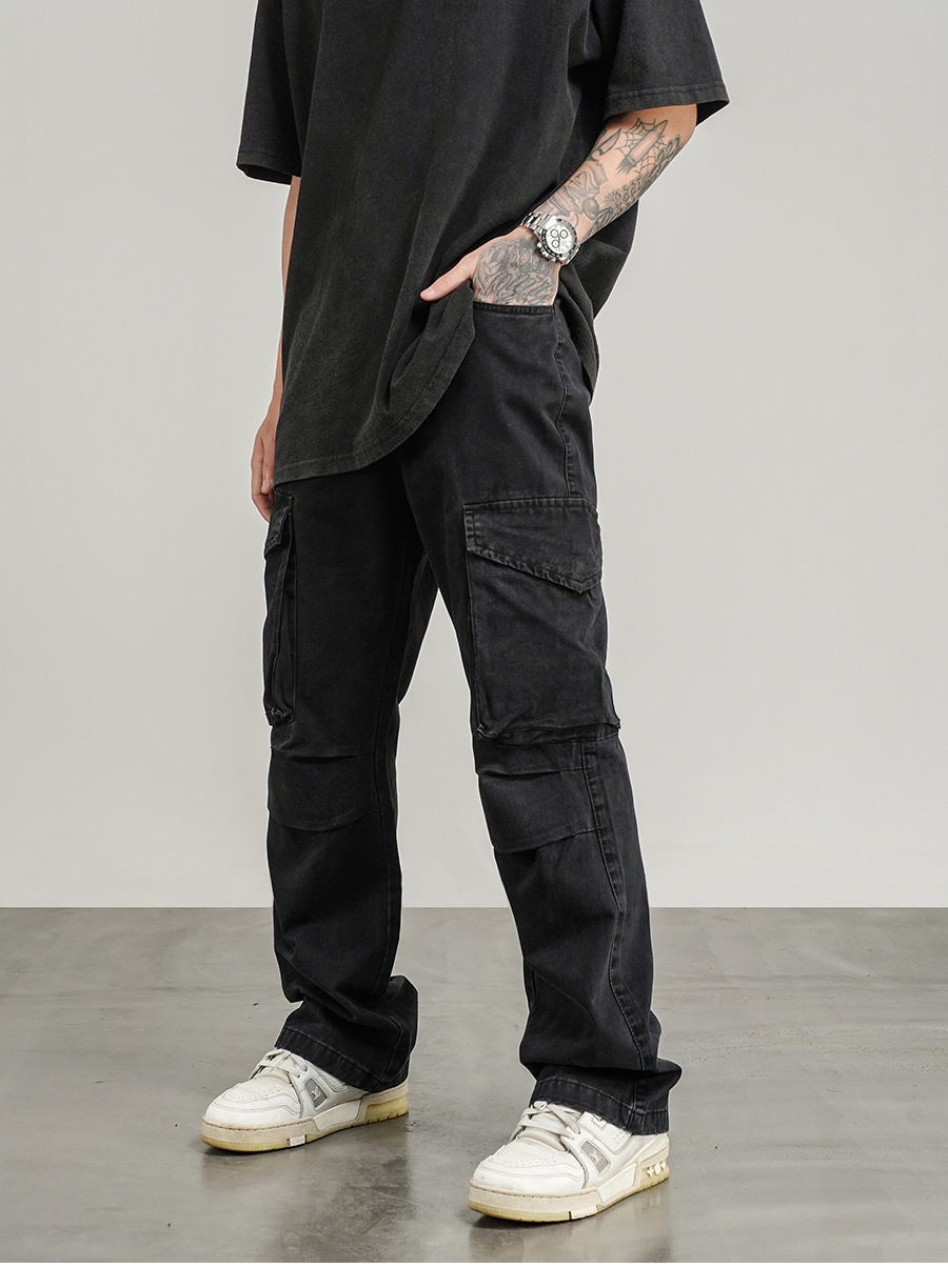 BLACK OF EXIT美式復古做舊大口袋直筒工裝褲男國潮高街寬鬆長褲