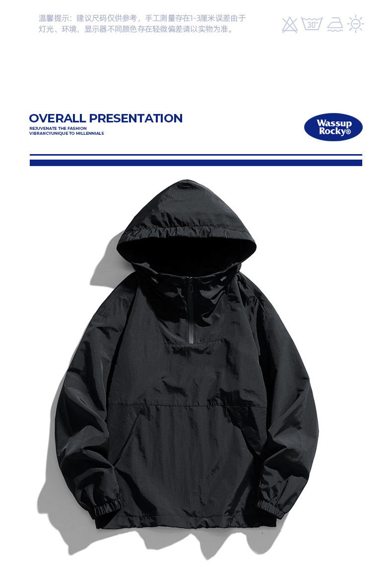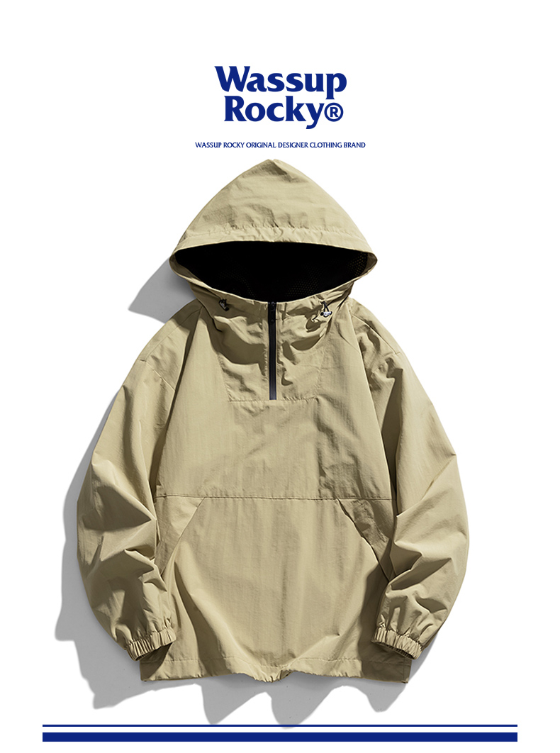 Wassup Rocky日系復古連帽衝鋒衛衣山系戶外運動防風夾克外套男女