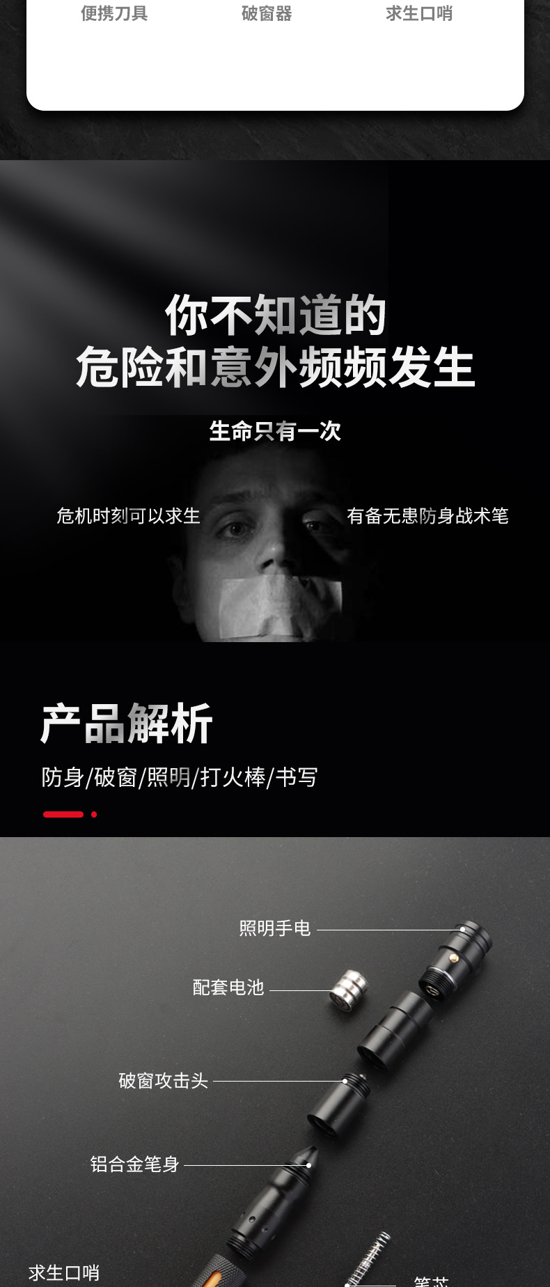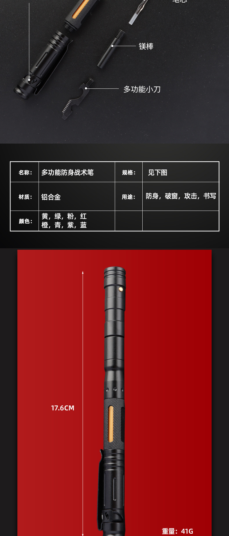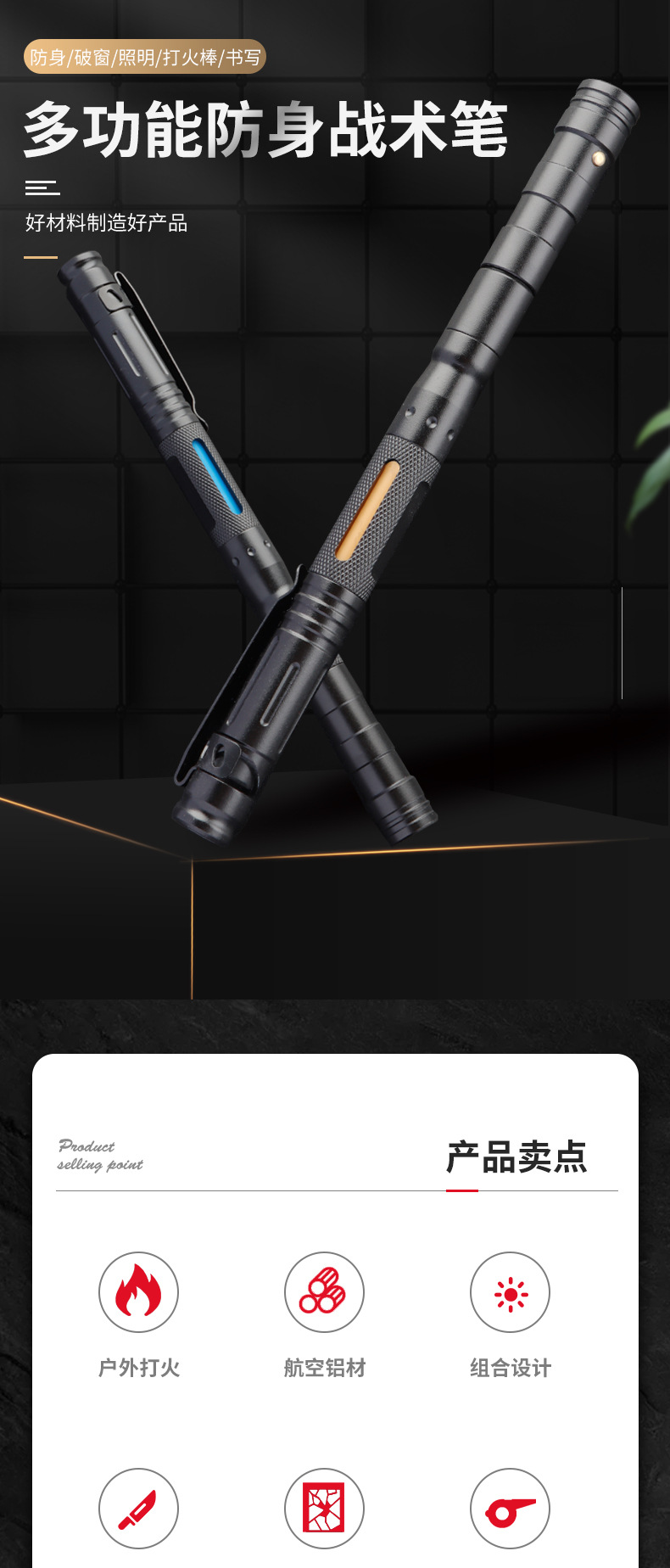 偽裝戰術筆 多功能筆鋁合金筆用途筆簽字筆七合一多功能防身筆