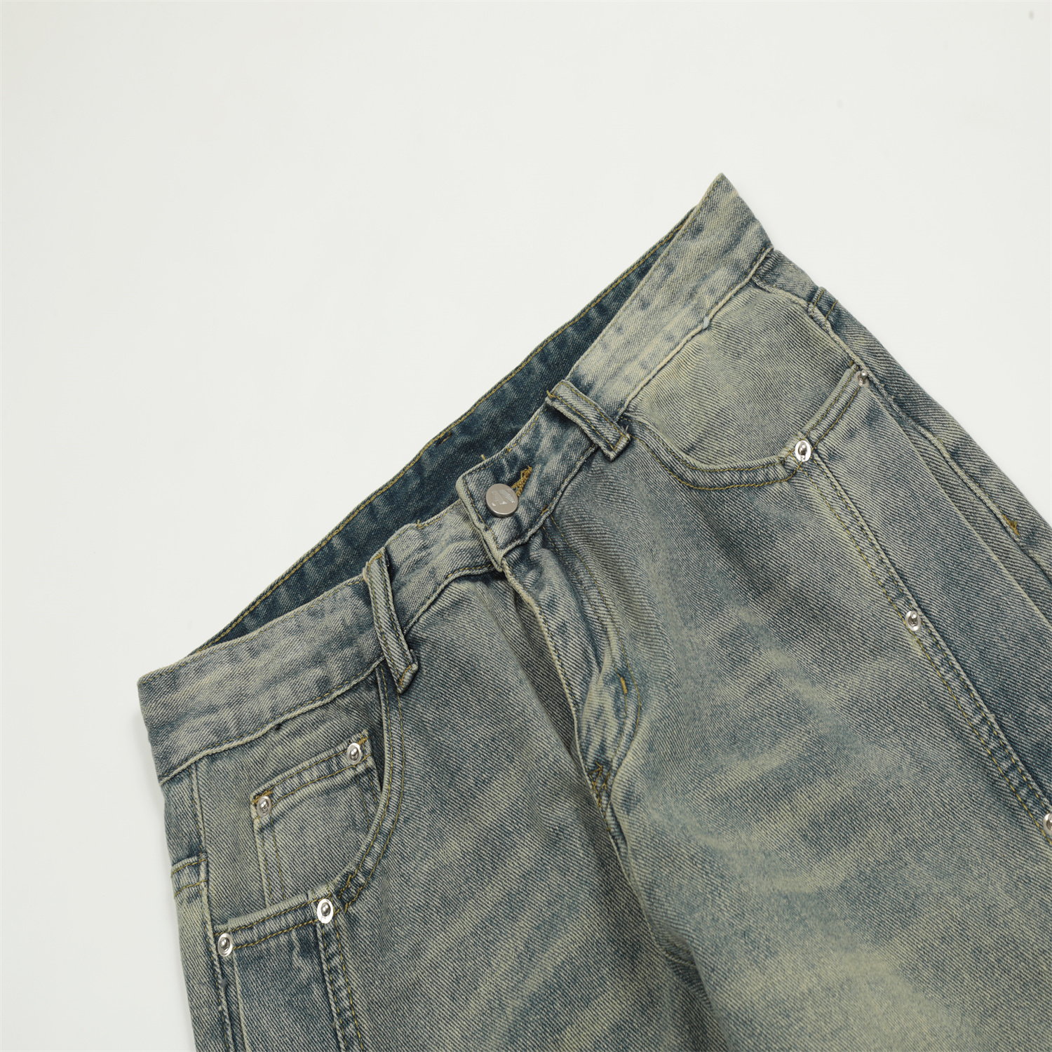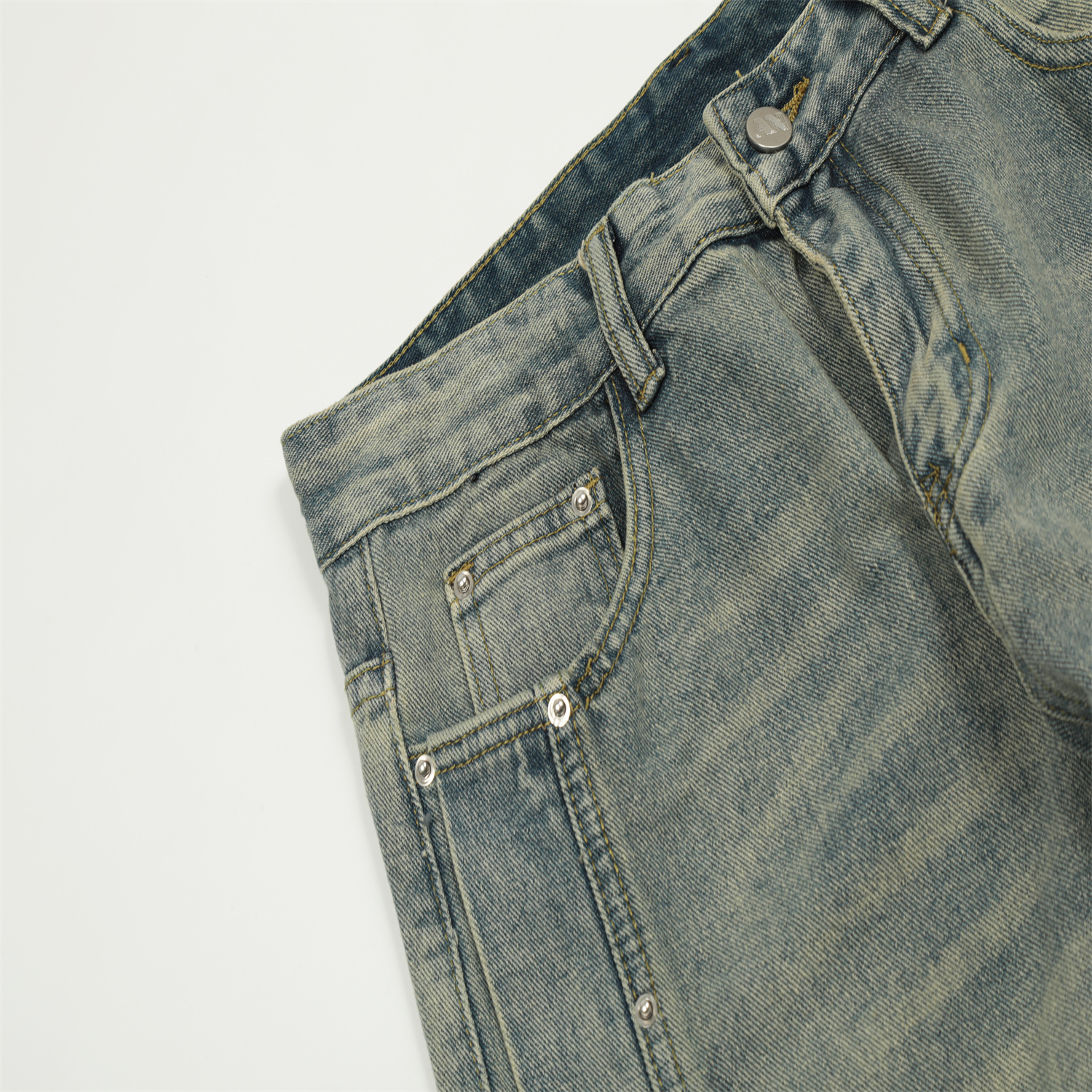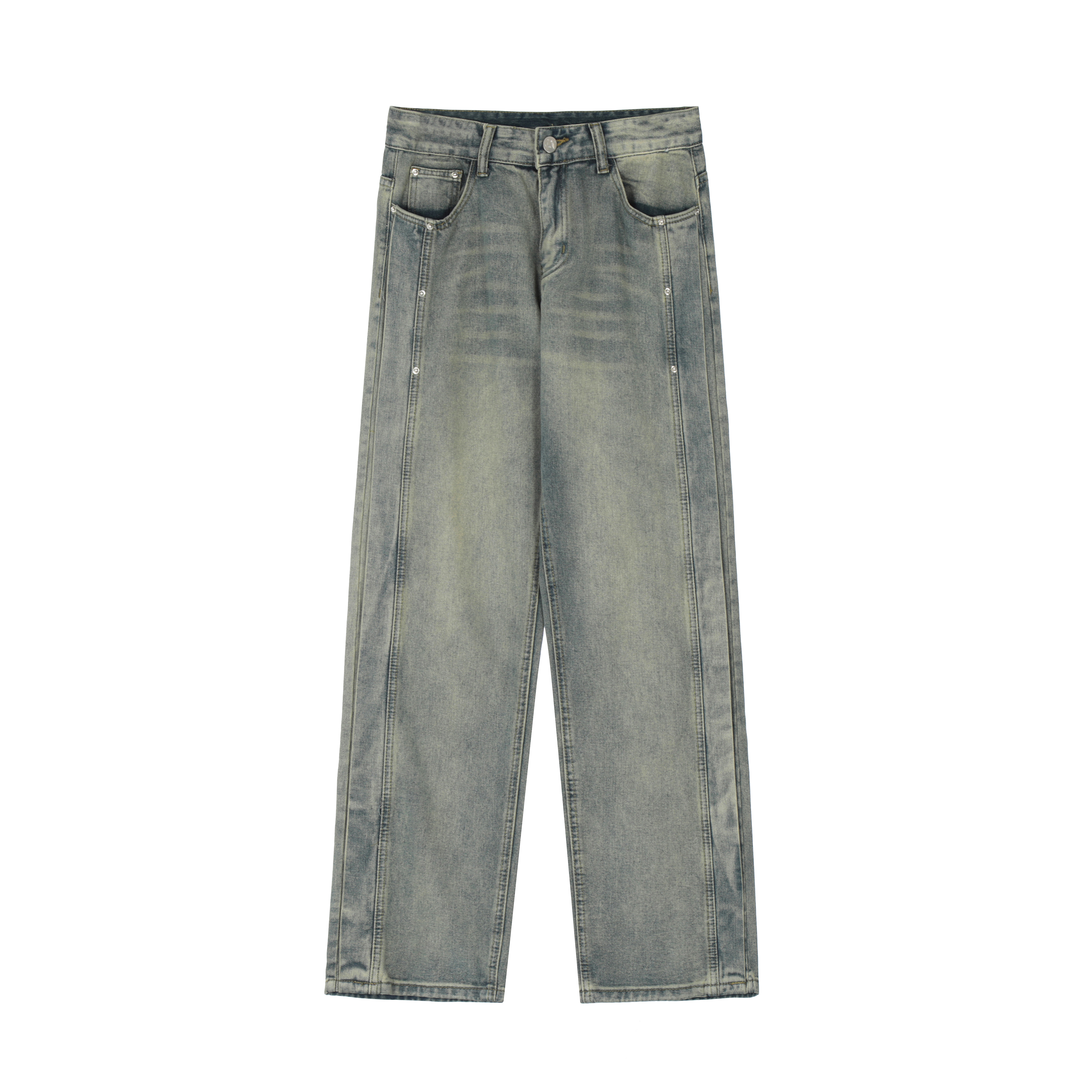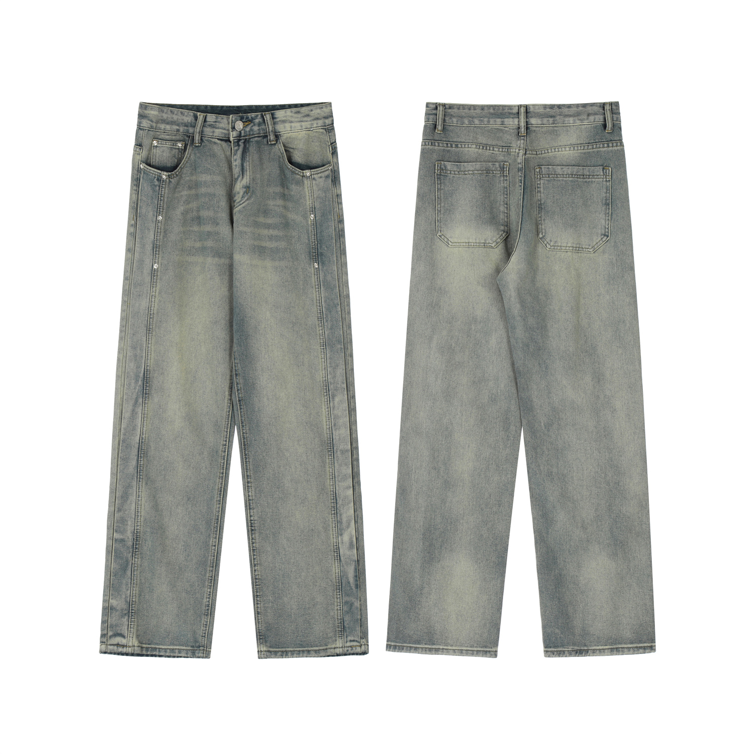 Feel lonely 2023新款美式復古街頭風做舊小眾設計寬鬆直筒牛仔褲