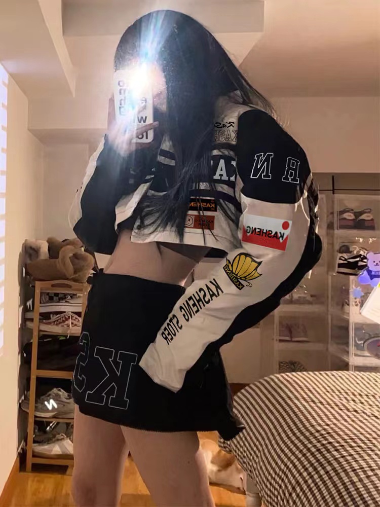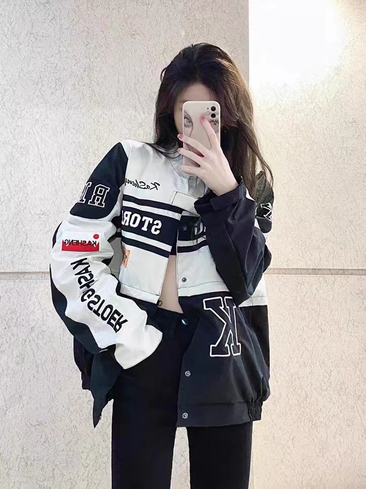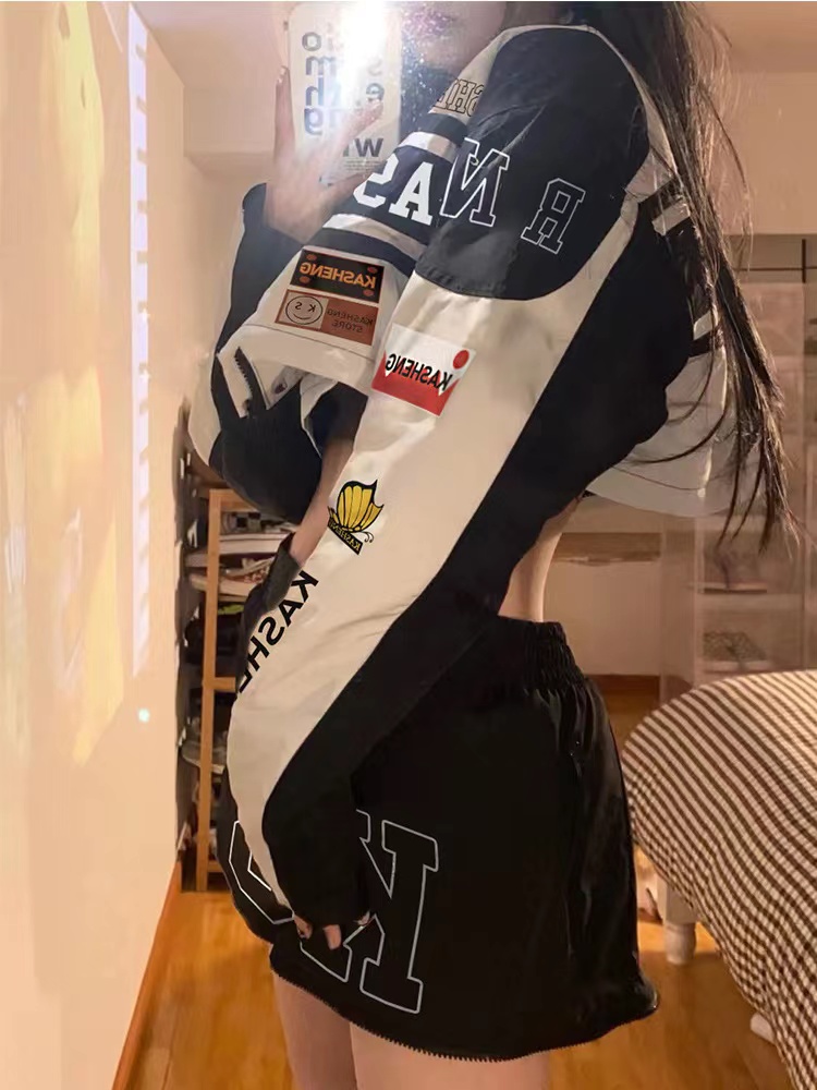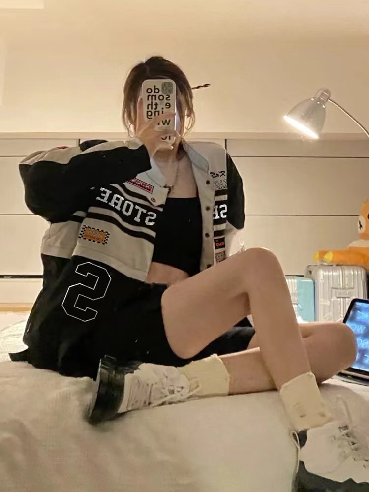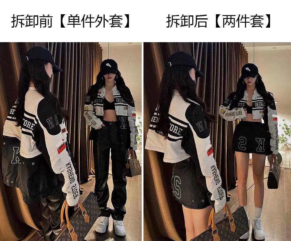 vintage機車棒球服夏季韓版騎行賽車服可拆卸套裝薄款防曬外套女