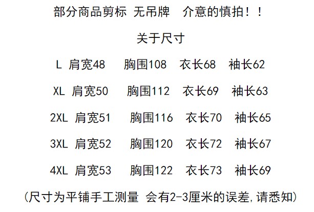 尺碼 L 建議110-130斤,XL 建議130-150斤,2XL 建議150-165斤,3XL建議165-180斤,4XL建議180-195斤